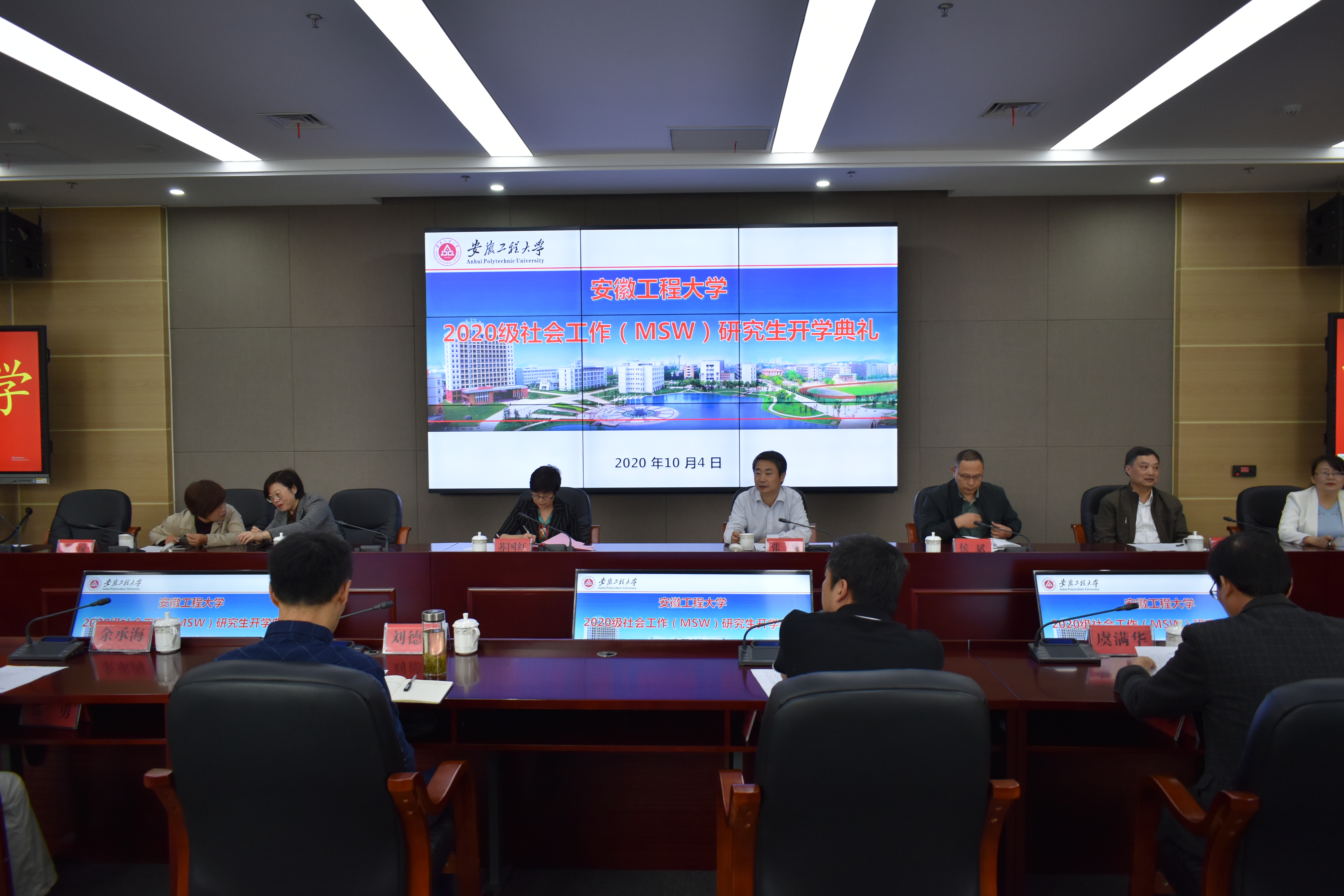 10月4日,RayBetApp官网下载 人文学院2020级社会工作专业硕士(MSW)和公共管理硕士(MPA)开学典礼在新图书馆201举行。开学典礼分别由学院院长刘军和党委书记邓英扣主持,出席MSW开学典礼的有校党委副书记苏国红教授、芜湖市委党校副校长张勇、弋江区民政局局长孙亚敏、镜湖区民政局副局长侯斌、芜湖市弘德社会工作服务中心主任方琼,出席MPA开学典礼的有芜湖市政协副主席、市科协主席陈怡、芜湖市委党史和地方志研究室主任刘萍、芜湖市委组织部四级调研员刘金峰,出席开学典礼的还有人文学院党政领导、部分硕士生导师、专业负责人、研究生秘书、研究生党支部书记、2020级MSW和MPA研究生等。
