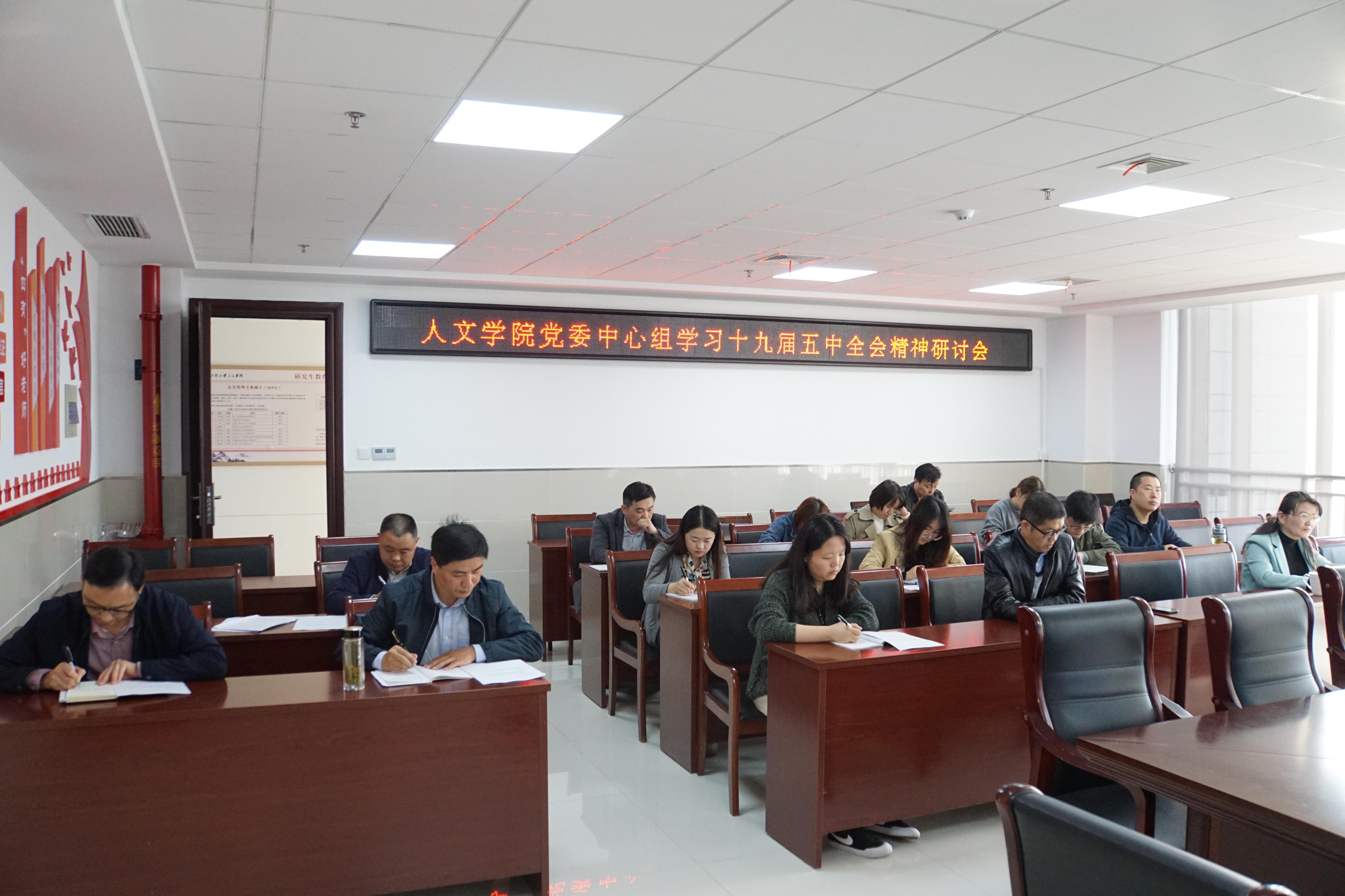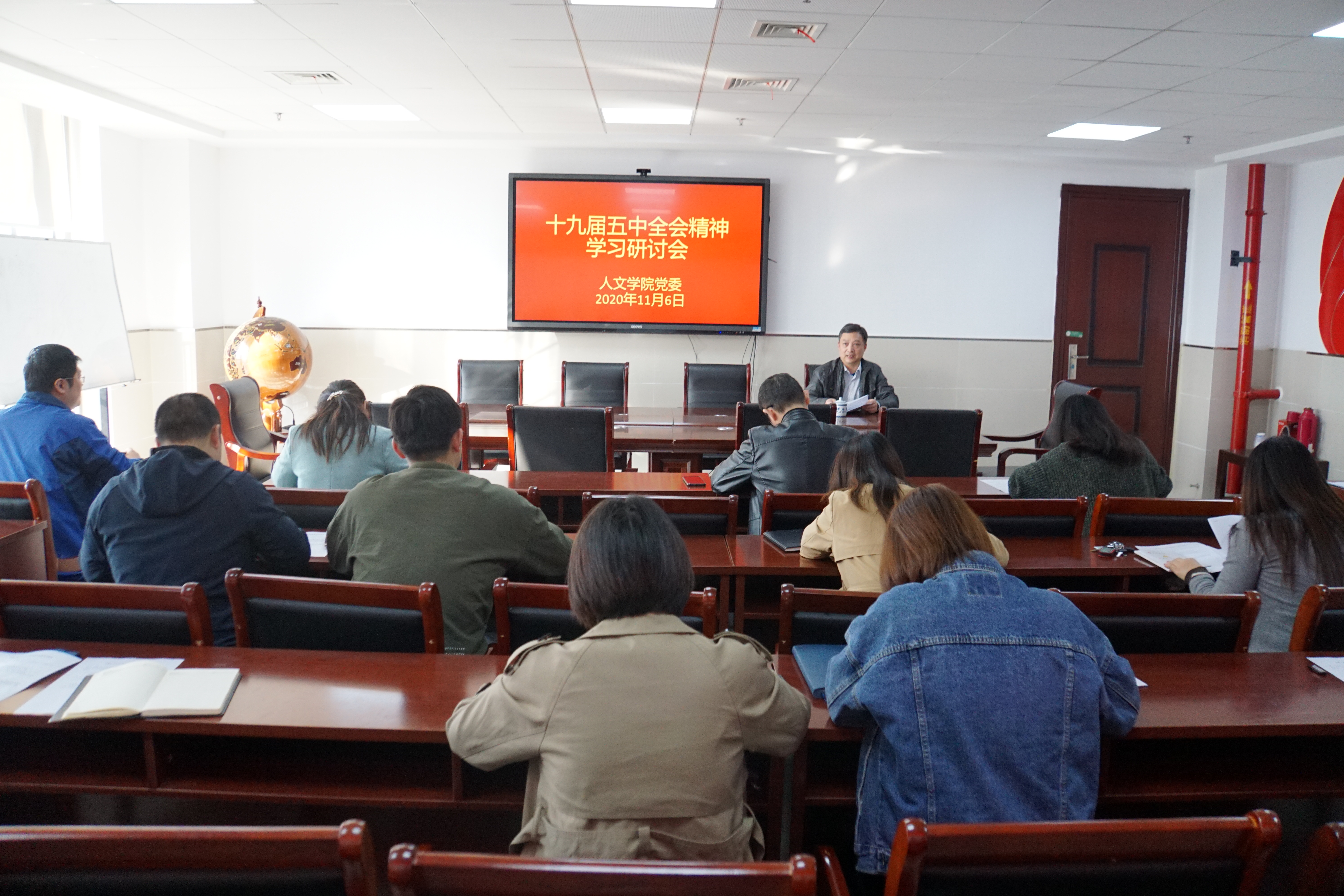 11月6日下午,人文学院召开党委理论中心组会议,集中学习研讨十九届五中全会精神。学院党委委员、办公室主任、组织员、党支部书记、科级干部、辅导员等共同参加。党委书记邓英扣主持会议。