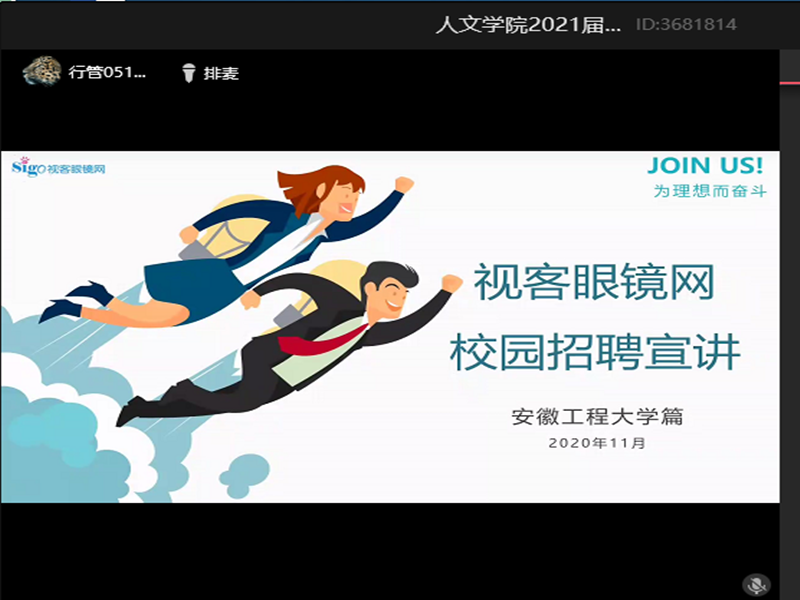 为了更好地做好2020届毕业生就业工作,拓宽毕业生就业渠道,11月18日人文学院开展南京视客网络科技有限公司线上专场招聘会。
