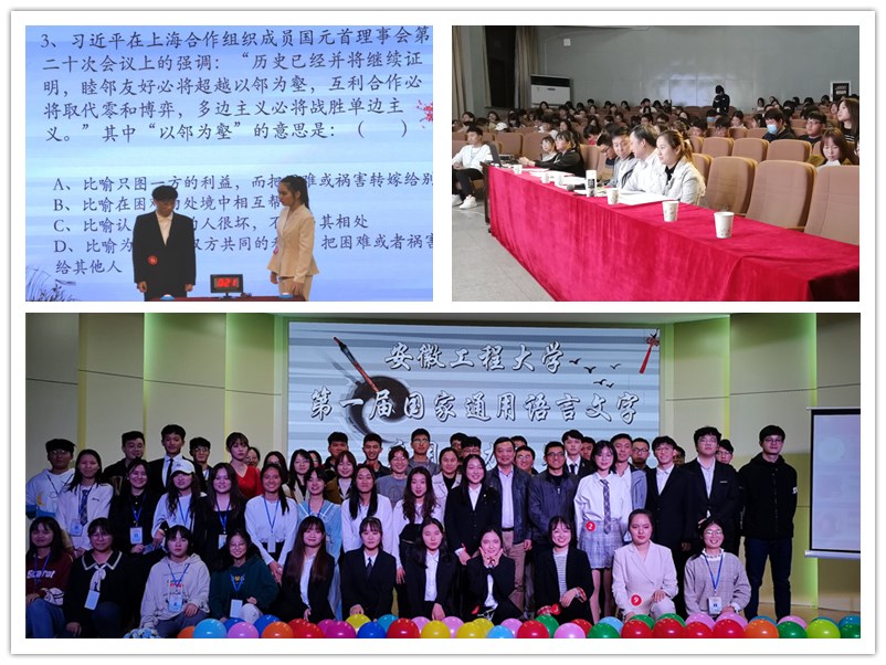 紧接着比赛进入了紧张的第二环节,选手上台进行知识抢答比赛。六轮比赛激烈紧张,选手们沉着冷静,对答流利,精彩激烈的抢答更时不时让台下响起热烈的掌声,将比赛氛围推向高潮。在一番激烈角逐之后,建筑191汪安云,广告201李晨冉两位选手在比赛中脱颖而出,拔得头筹,荣获一等奖;广告181李洁,英语193杨紫燕,行管202宋妍,英语191诸兆琪同样表现不俗,斩获二等奖,电子184范祺,营销182仰亮亮,高分子191李豪林,纺织204操若辰,社工(升)202周康平,电科202赵薇获三等奖。最终,比赛在各位选手和评委老师的合影留念中落下帷幕。