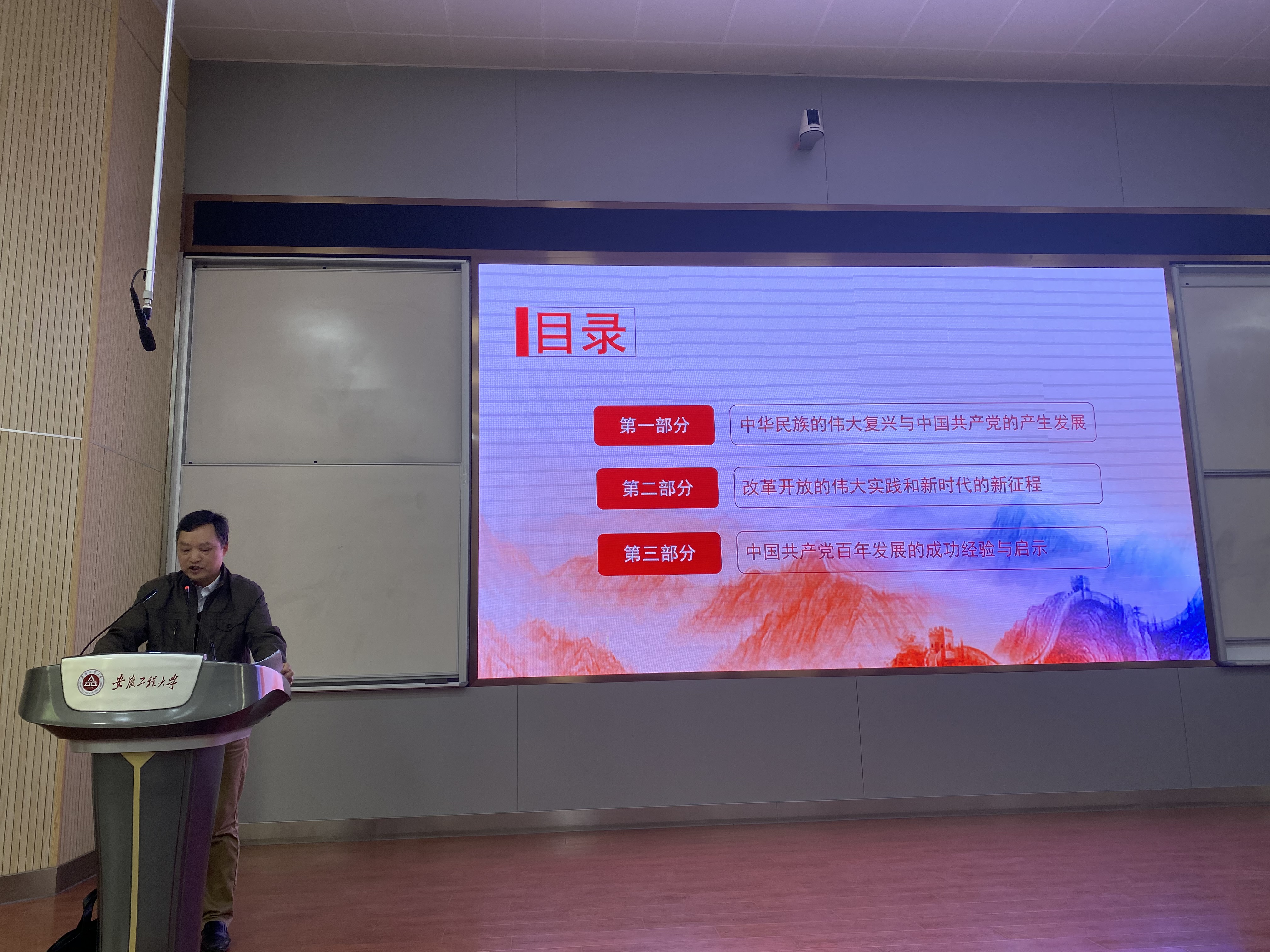 邓英扣从回顾中华民族的伟大复兴与中国共产党的产生发展、改革开放的伟大实践和新时代的新征程、中国共产党百年发展的经验与启示三个方面作出讲解。他指出,我们要深入了解中华民族进行过的艰难抗争,中国共产党用了二十八年的时间,完成了反帝反封建反官僚资本主义的新民主主义革命任务,建立了中华人民共和国。在实行改革开放的伟大实践后,跨越了中华民族五千年的历史,解决了过去几千年都没有解决的温饱问题。从党的十八大至今,中国共产党带领人民决战脱贫攻坚、全面建成小康社会,夺取新时代中国特色社会主义伟大胜利,我国取得了举世瞩目的伟大成就。在未来30年的发展中,我们更要发挥优势解决问题,实现中华民族伟大复兴中国梦。邓英扣强调,必须做到九个坚持,坚持党对一切工作的领导、坚持以人民为中心、坚持马克思主义的指导地位、坚持走中国特色社会主义道路、坚持和完善中国特色社会主义制度、坚持以发展为第一要务、坚持扩大开放、坚持全面从严治党、坚持辩证唯物主义和历史唯物主义世界观和方法论。