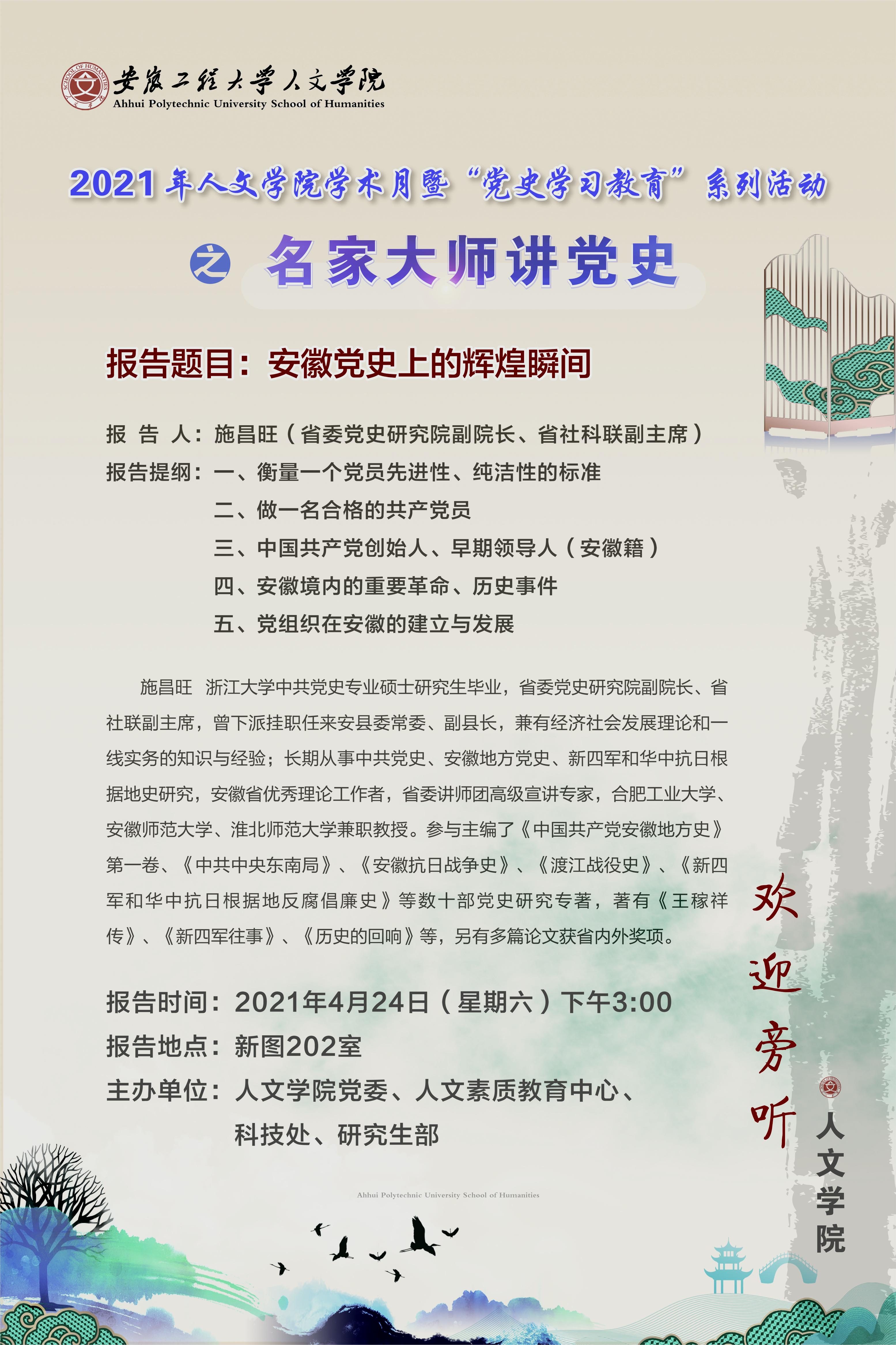 2021年人文学院“学术月”暨“党史学习教育”系列活动之名家大师讲党史