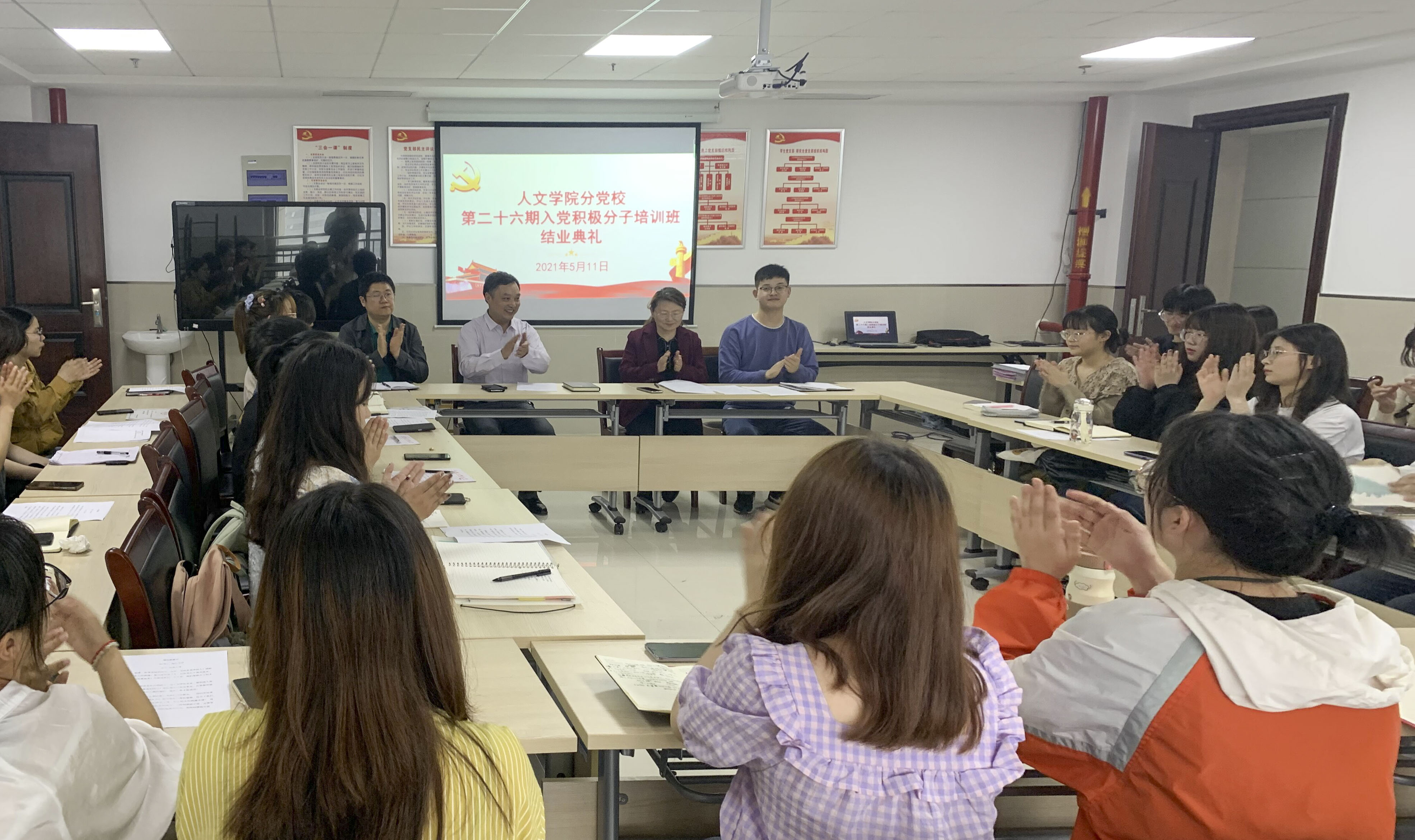2021年5月11日下午,人文学院分党校第二十六期入党积极分子培训班结业典礼在新图书馆1415会议室隆重举行。人文学院党委书记邓英扣、院党委副书记金艾裙、组织员、培训班班主任、全体学员共同出席了本次结业典礼。典礼由院党委副书记金艾裙主持。