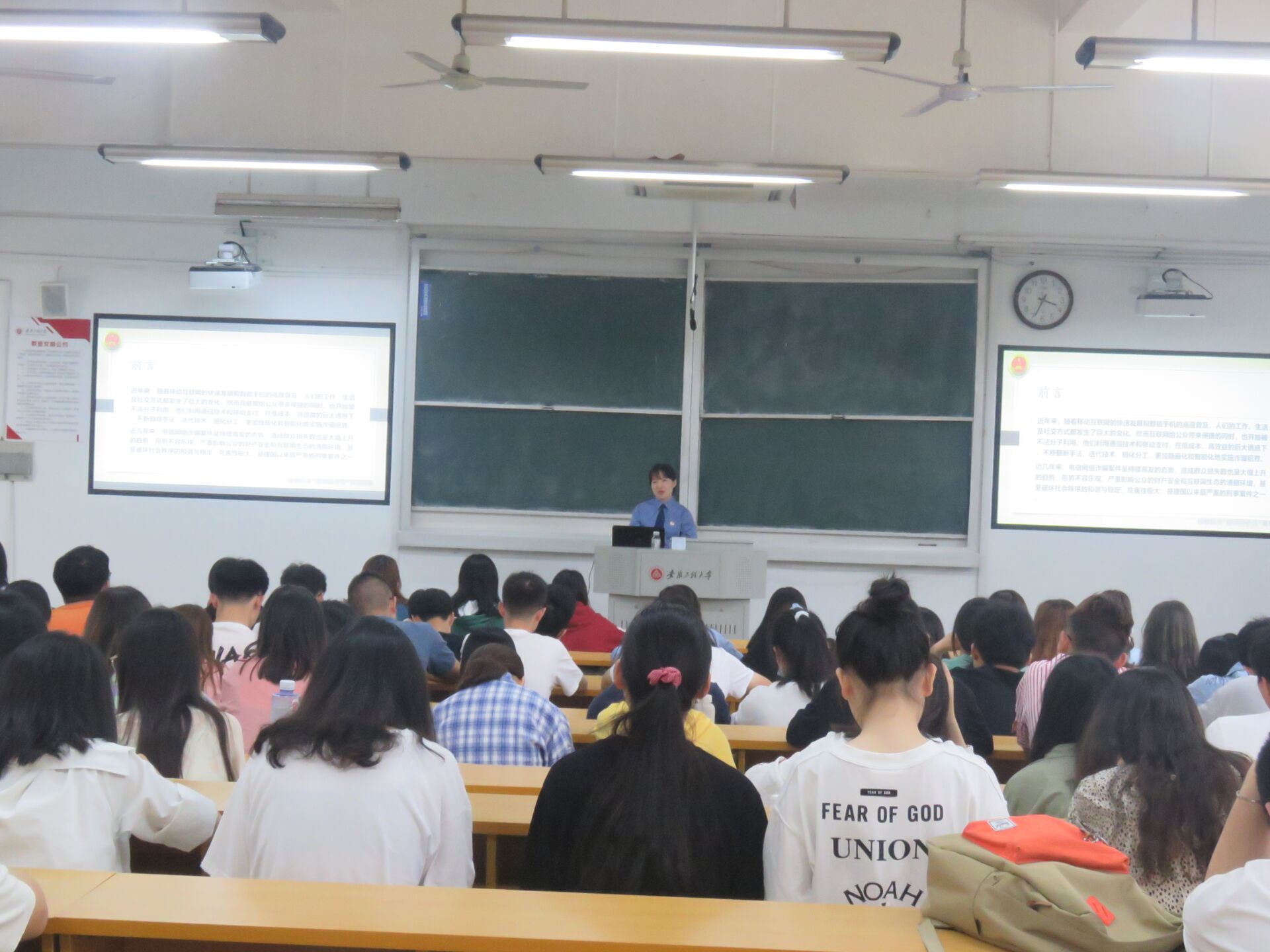 为进一步加强平安校园建设,切实提高我校师生防骗、识骗安全意识,5月12日下午,人文学院邀请芜湖市人民检察院第二检察部副主任、一级检察官成璨作了题为“全民反电诈——平安进校园”专题报告。此次报告会由法学系主任杜蓓蕾主持,法学19级、20级全体同学到场聆听。