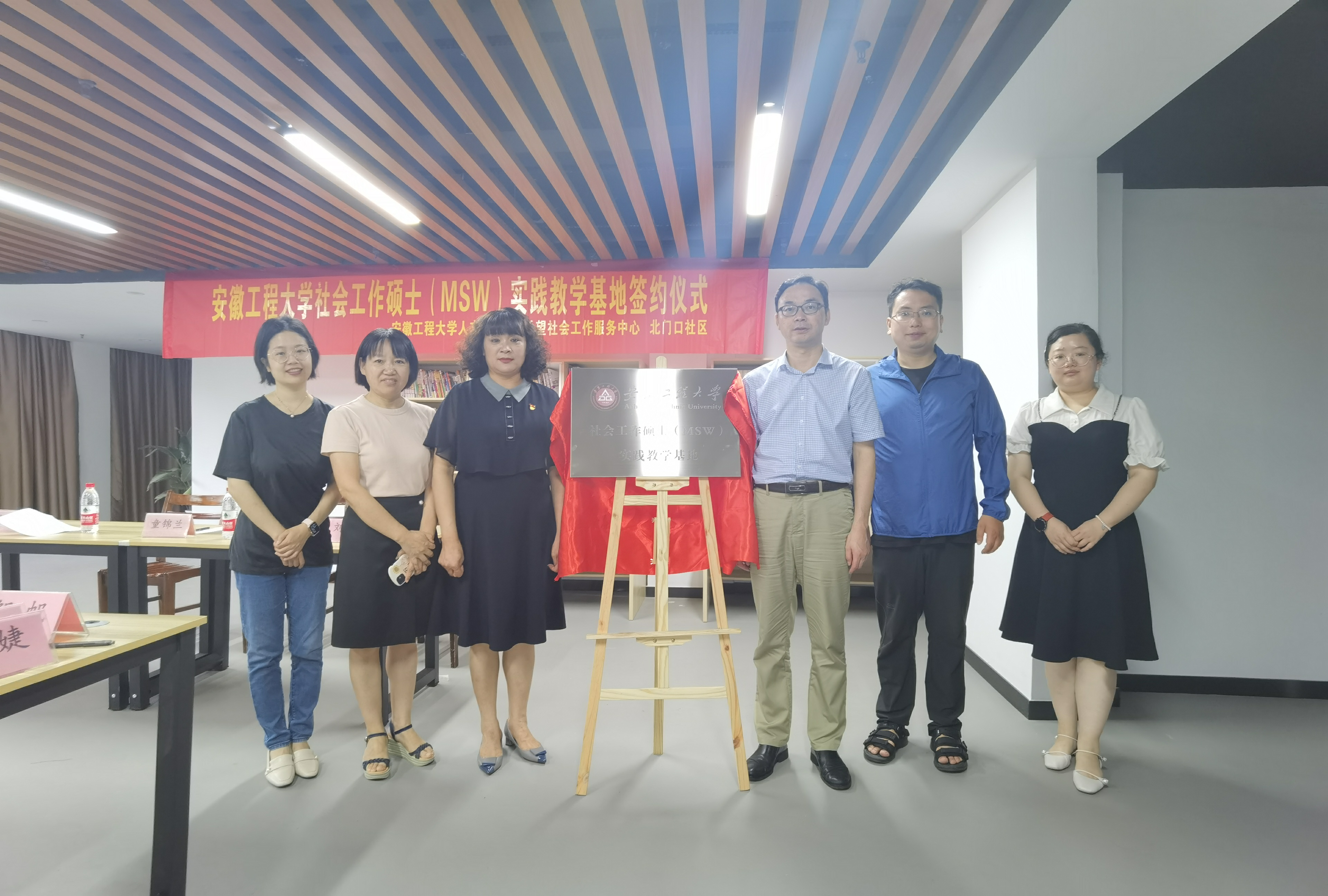 7月8日下午,RayBetApp官网下载 人文学院教学实习基地签约授牌仪式在芜湖市新希望社会工作服务中心分部北门口社区居委会正式举行。北门口社区居委会童锦兰主任,新希望社会工作服务中心负责人方飞、人文学院院长刘军、社会工作系主任周纯、研究生秘书李婕等出席签约与授牌仪式。