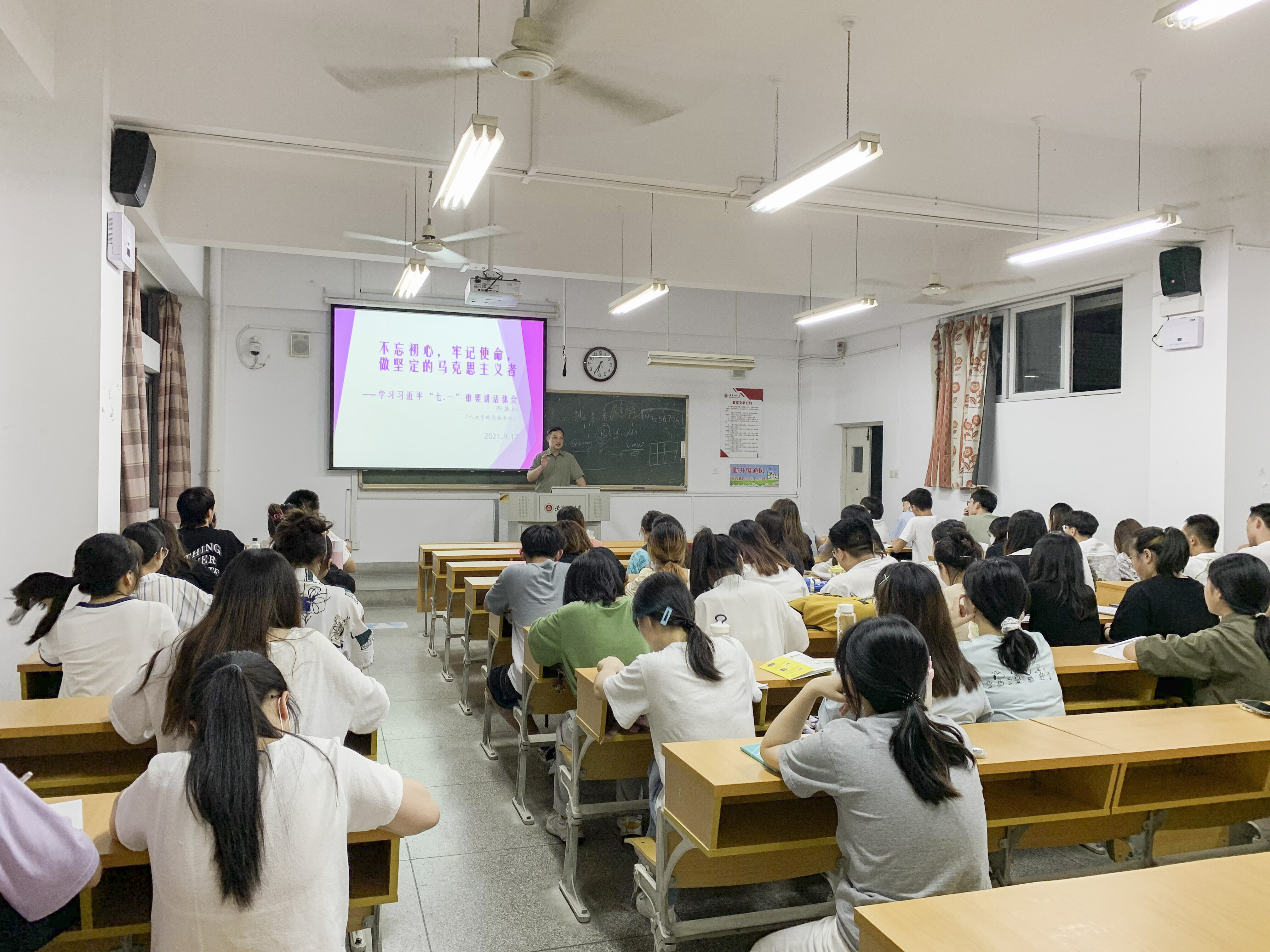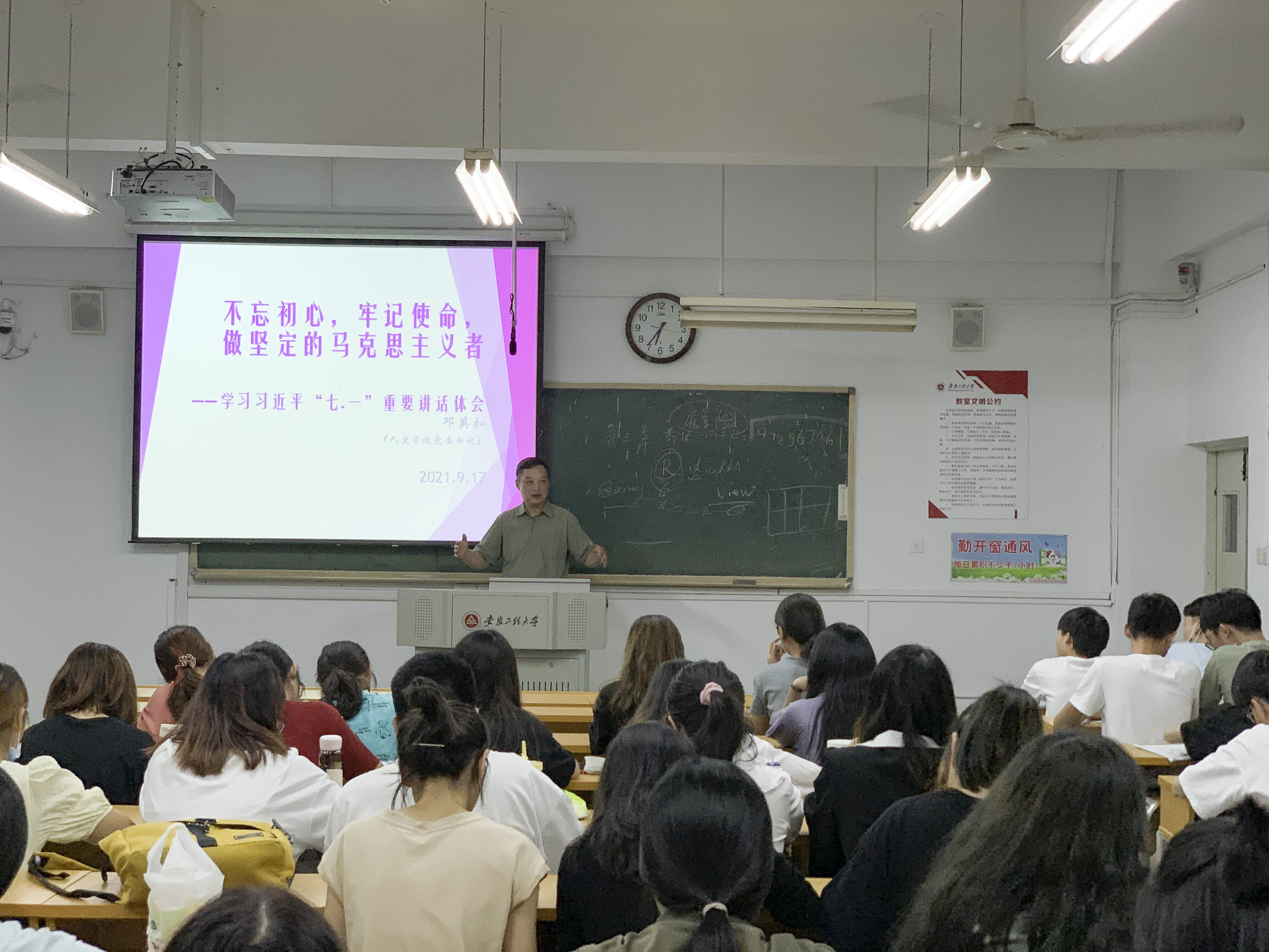 为进一步学习贯彻习总书记“七一”重要讲话精神,巩固党史学习教育成效,加强入党积极分子培训班学员政治修养,9月17日下午,人文学院党委书记邓英扣以“不忘初心、牢记使命,做坚定的马克思主义者—学习习近平“七一”重要讲话体会”为题,给人文学院分党校第二十七期入党积极分子培训班学员上了一堂的专题党课。入党积极分子培训班全体学员参加了专题党课学习。