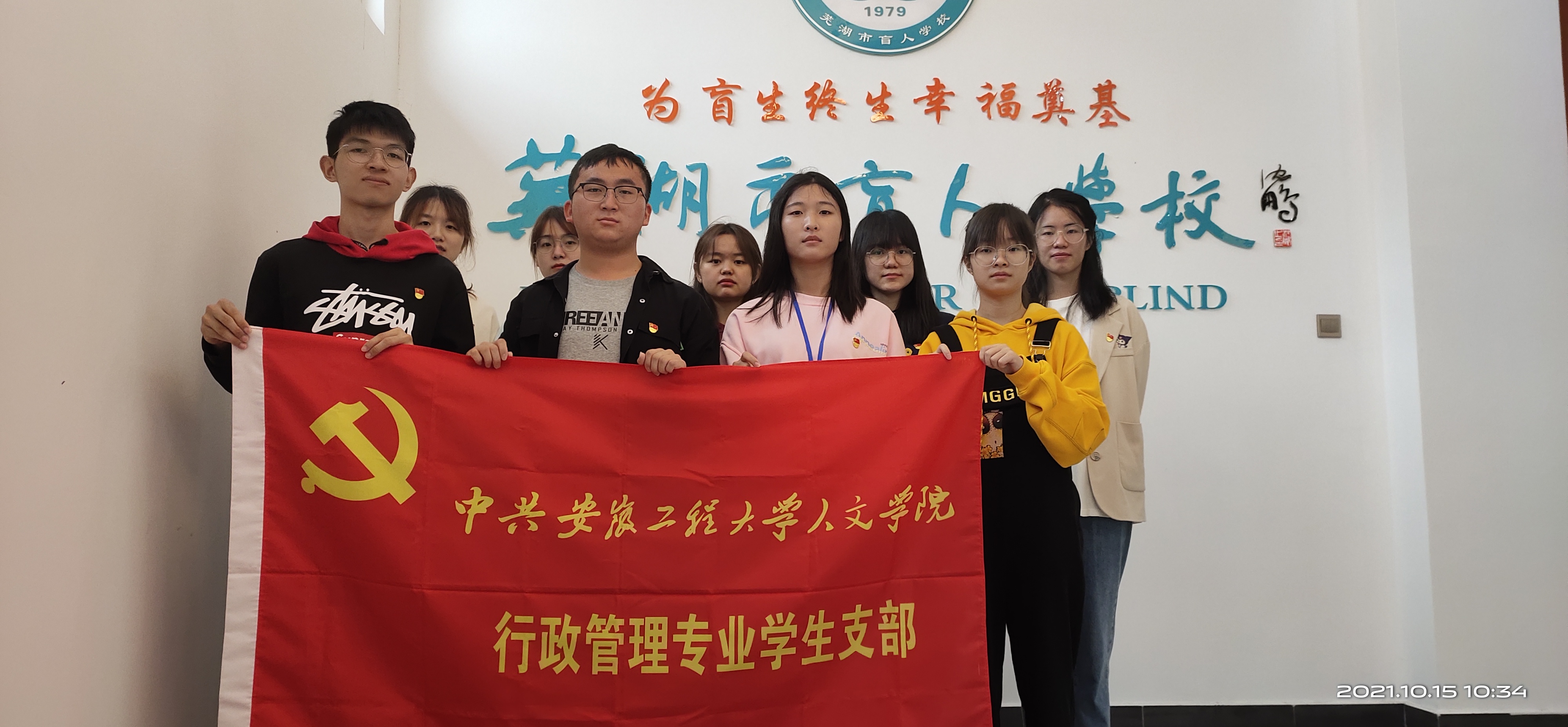 金秋时节伴随着入秋迎面而来的阵阵桂花香,为了进一步深入开展党史学习教育,践行党员为人民服务的初心和使命,加强党建共建工作,发挥党员同志的先锋模范带头作用,行政管理专业学生党支部于10月15日上午前往芜湖市盲人学校积极开展“金秋十月桂花香,盲校助残自强心”党史学习教育——我为师生办实事活动。
