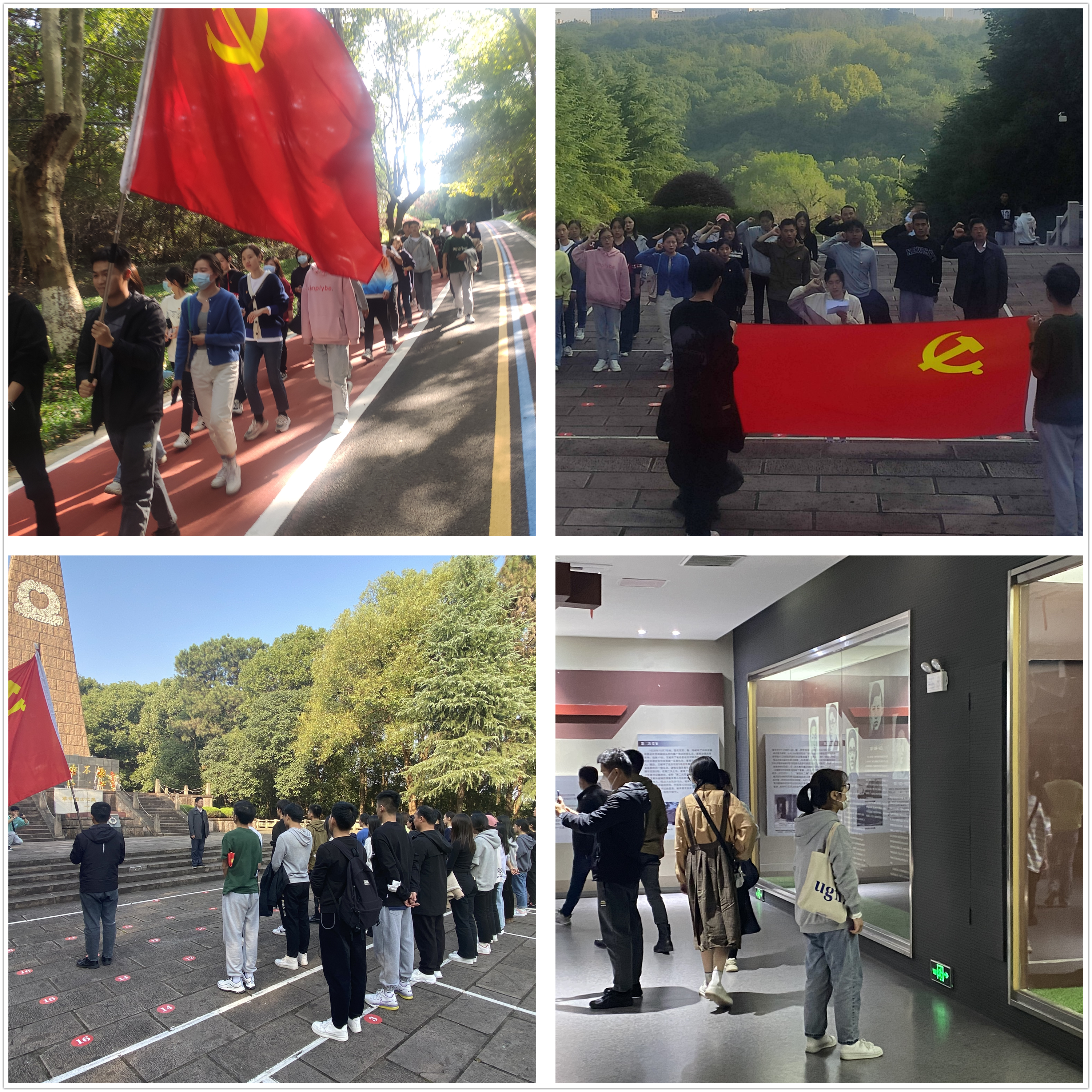 党员同志佩戴党员徽章,高举党旗以两路纵队徒步前往芜湖烈士陵园进行瞻仰。瞻仰活动伊始,全体党员同志怀着无比崇敬的心情深切哀悼革命烈士,默哀三分钟。默哀结束后,刘海涛同志进行讲话,他指出在建党100年之际,我们全体党员要牢记为党和国家事业牺牲的革命英烈,牢记作为党员的初心使命,用我们的实际行动学史力行,争取成为工程明珠,打造璀璨人文。随后,2020、2021级党员代表分别进行发言,表明要努力学习革命先烈的奋斗精神,赓续红色血脉,继承革命遗志。最后,在党支部组织委员杨雅馨同志的带领下全体党员面对党旗,高举右手,重温入党誓词。