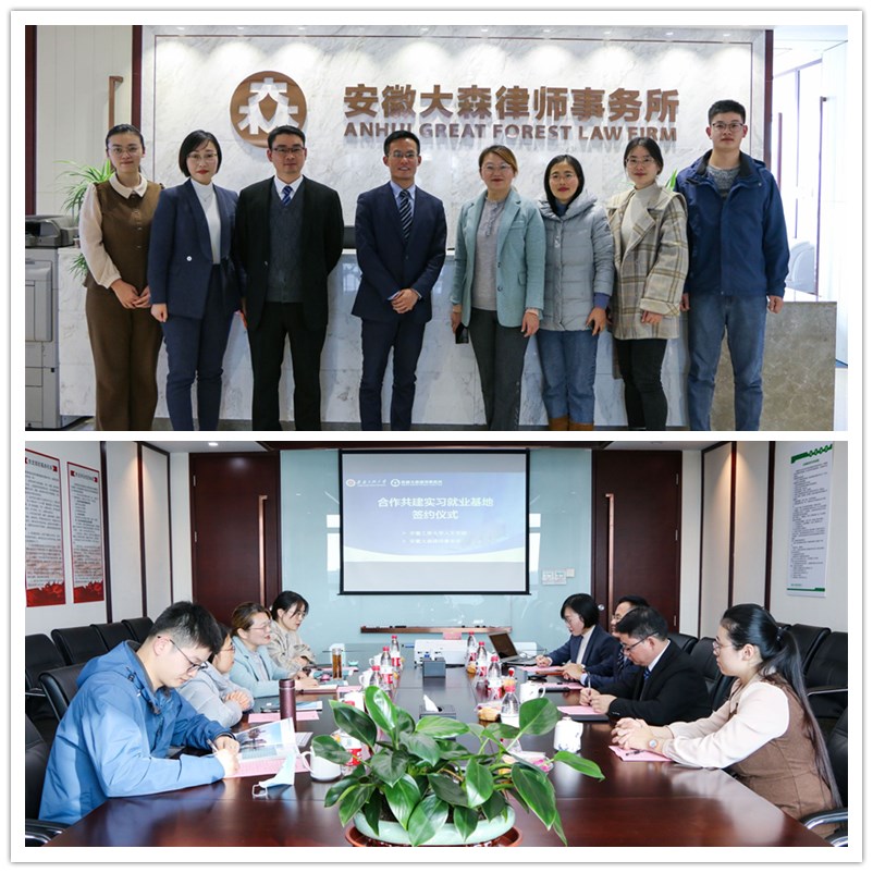 为进一步做好毕业生就业工作,了解用人单位实际需求,拓宽学生就业与实习渠道,提升人才培养质量,2021年11月9日至10日,人文学院党委副书记金艾裙、法学系主任杜蓓蕾、院团委书记、毕业班辅导员一行赶赴安徽大森律师事务所、北京盈科(合肥)律师事务所、安徽江玮律师事务所等重点单位深入调研就业市场,走访了解学生就业情况,签订就业实习合作协议。
