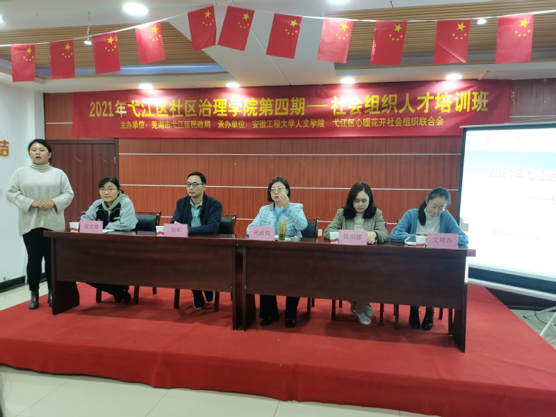 为了充分发挥社会组织参与社区治理的积极作用,增强社区社会组织工作人员的专业知识与实践技能水平,由芜湖市弋江区民政局主办,RayBetApp官网下载 人文学院、弋江区心暖花开社会组织联合会承办的弋江区社区治理学院第四期社会组织人才培训班于2021年11月5日在芜湖市顺利开班。
