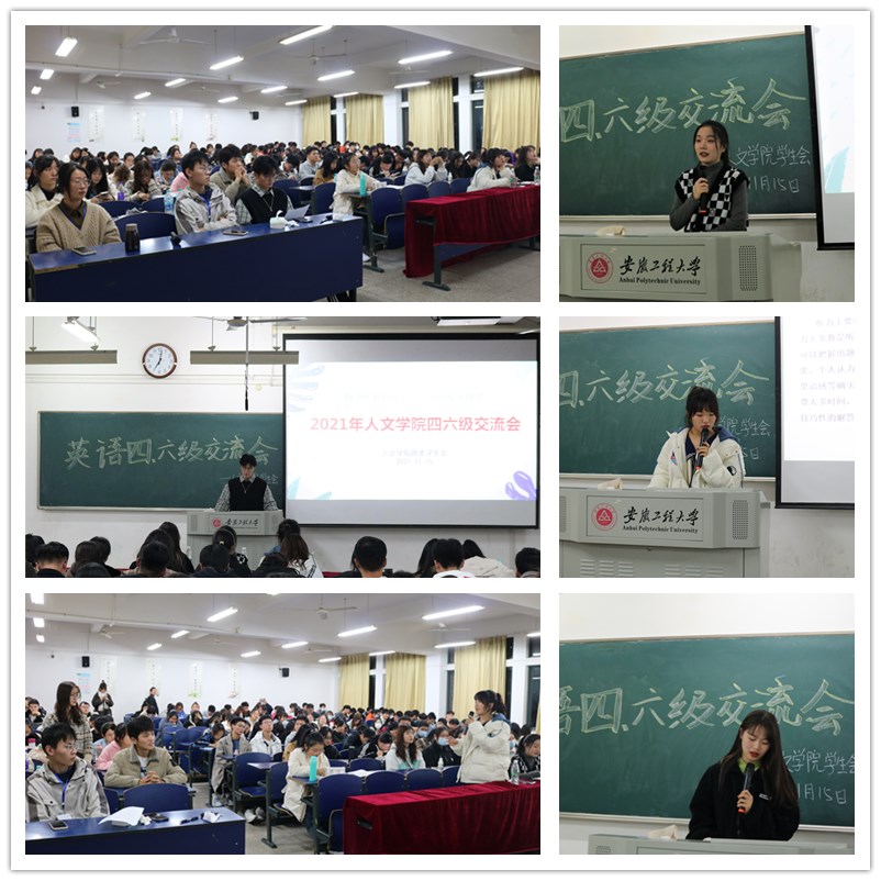 为了帮助同学们掌握高效学习方法,营造积极向上的备考氛围,提高学生英语四六级的通过率,进一步加强学院学风建设,11月15日晚人文学院英语四六级经验交流会在6教211举行,2021级新生参加此次经验交流会。