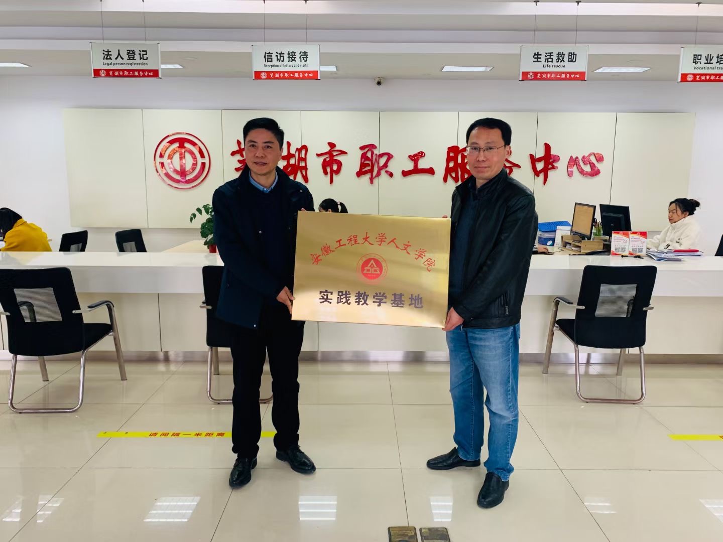 为进一步加强专业实践教学,深化校企、校地合作,探索校企、校地协同育人的人才培养模式,强化专业人才培养与社会需求的对接,11月30日,人文学院与芜湖市职工服务中心共建实践教学基地签约暨揭牌仪式在芜湖市职工服务中心举行。