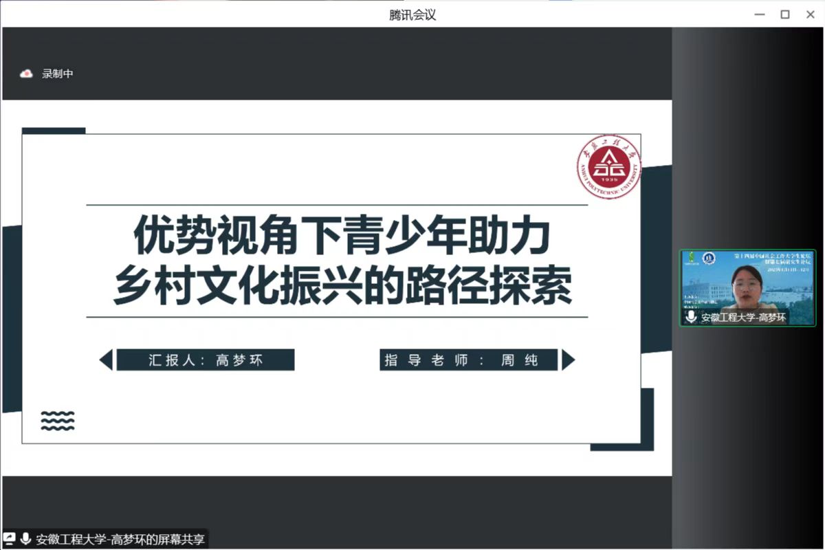 经学院推荐、专家评审等环节,人文学院社会工作21级硕士研究生祝巍铖、高梦环两位同学成功入围,并在大会上做主题发言。祝巍铖的论文《优势视角下村居环境治理中老人参与提升路径探索》获二等奖,该论文基于我国村居环境治理实际,通过案例整合与分析,提出目前农村老人在治理过程中参与不足的表现有:“浅参与”“无参与”以及“不合作”。从优势视角出发,减少对老人的“问题为本”思维,发掘老人的参与优势和价值,探索村居环境治理中提升老人参与的路径。高梦环的论文《优势视角下青少年助力乡村文化振兴的路径探索》,以乡村文化振兴与社会工作服务的契合性为背景,从青少年自身优势及农村社会环境出发,使用具体的社会工作实践项目案例,通过个案、小组、社区三大专业方法探索青少年社会工作助力乡村文化振兴的服务路径。汇报完毕后,江西财经大学尹忠海教授、华东理工大学何雪松教授分别给予研究指导和建议。