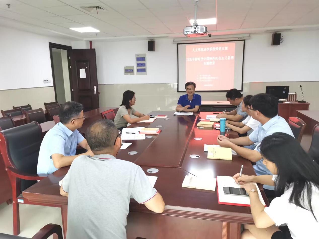 为认真学习贯彻习近平新时代中国特色社会主义思想,推动主题教育走深走实,8月9日下午,人文学院法学系教师党支部在图1215会议室开展主题教育学习研讨会。人文学院党委书记刘一出席会议。会议由支部书记张雷主持。