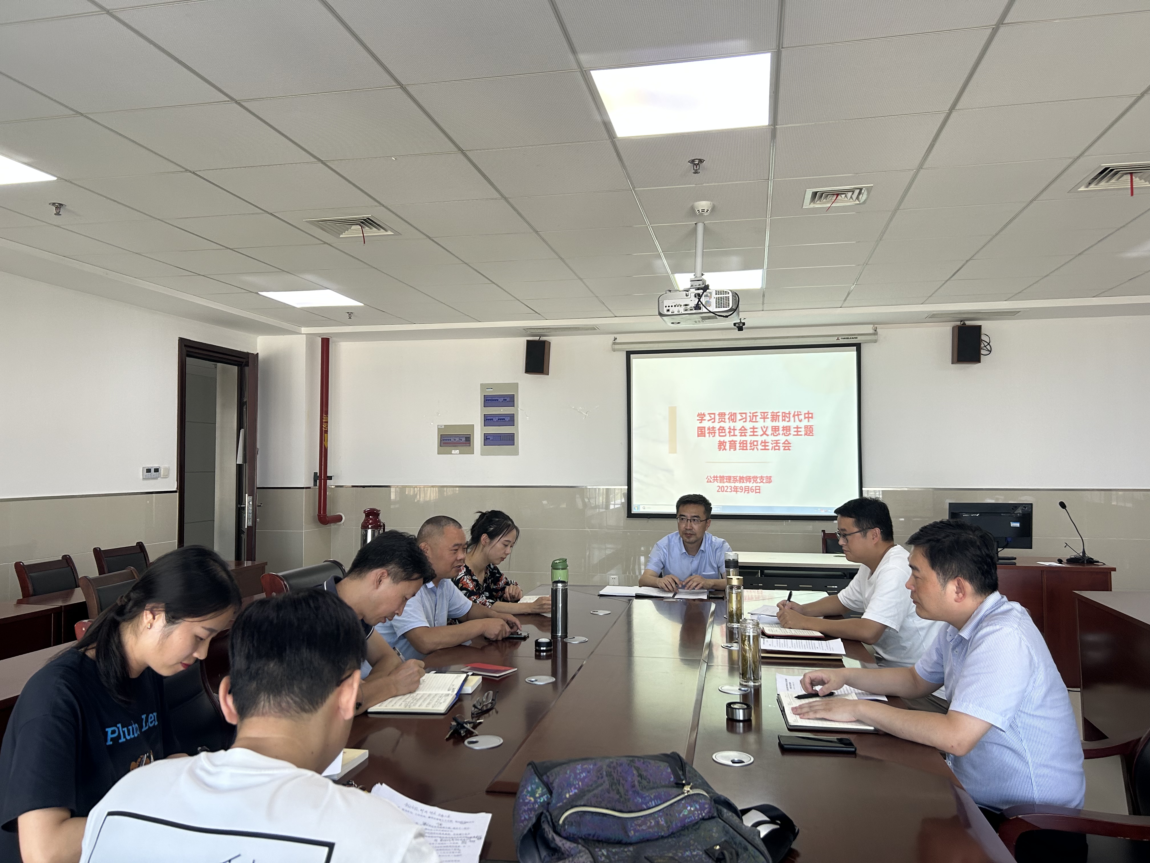 9月6日下午,人文学院公共管理系教师党支部在图书馆综合楼1215会议室召开学习贯彻习近平新时代中国特色社会主义思想主题教育组织生活会。人文学院党委书记刘一到会指导。