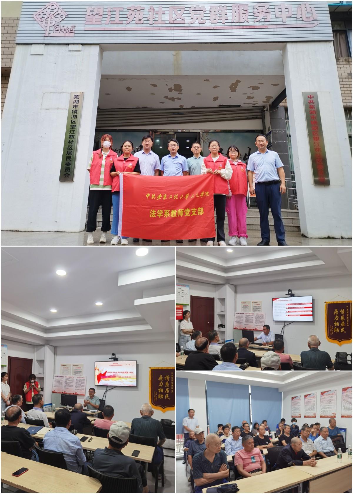 为深入学习宣传贯彻习近平法治思想,大力弘扬宪法精神,增强全民法治观念,9月13日下午,人文学院师生普法宣传功能型党支部前往镜湖区望江苑社区开展普法宣传活动。