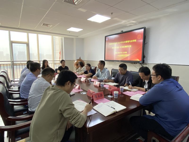 为加强兄弟院校交流,促进学科专业发展,9月25日,安徽工业大学公共管理与法学院院长徐济益教授带队来我院开展调研交流。学院党委书记刘一、院长刘军、党委副书记王中江、副院长张勇等参加交流活动。
