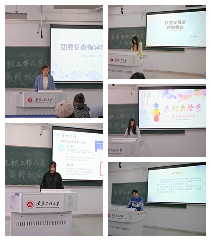 会议伊始,团学组织负责人和各部门负责人围绕工作职责、工作效果、存在不足、改进措施、未来工作安排等方面依次述职,回望过往奋斗路,展望未来新征程,为团学组织的接续发展立柱架梁。随后,各部门结合“三全六专”育人实践工作要活动组织效率、部门沟通协作等问题进行交流研讨最后,利昕云对团学组织各部门的工作成绩予以肯定,勉励团学组织全体学生干部继续秉持“全心全意为同学服务”的宗旨,常怀服务之心,始终把帮助青年解决问题作为工作的出发点和落脚点,在新学期继续发扬吃苦耐劳奋勇争先的精神,取得更加优异的成绩。