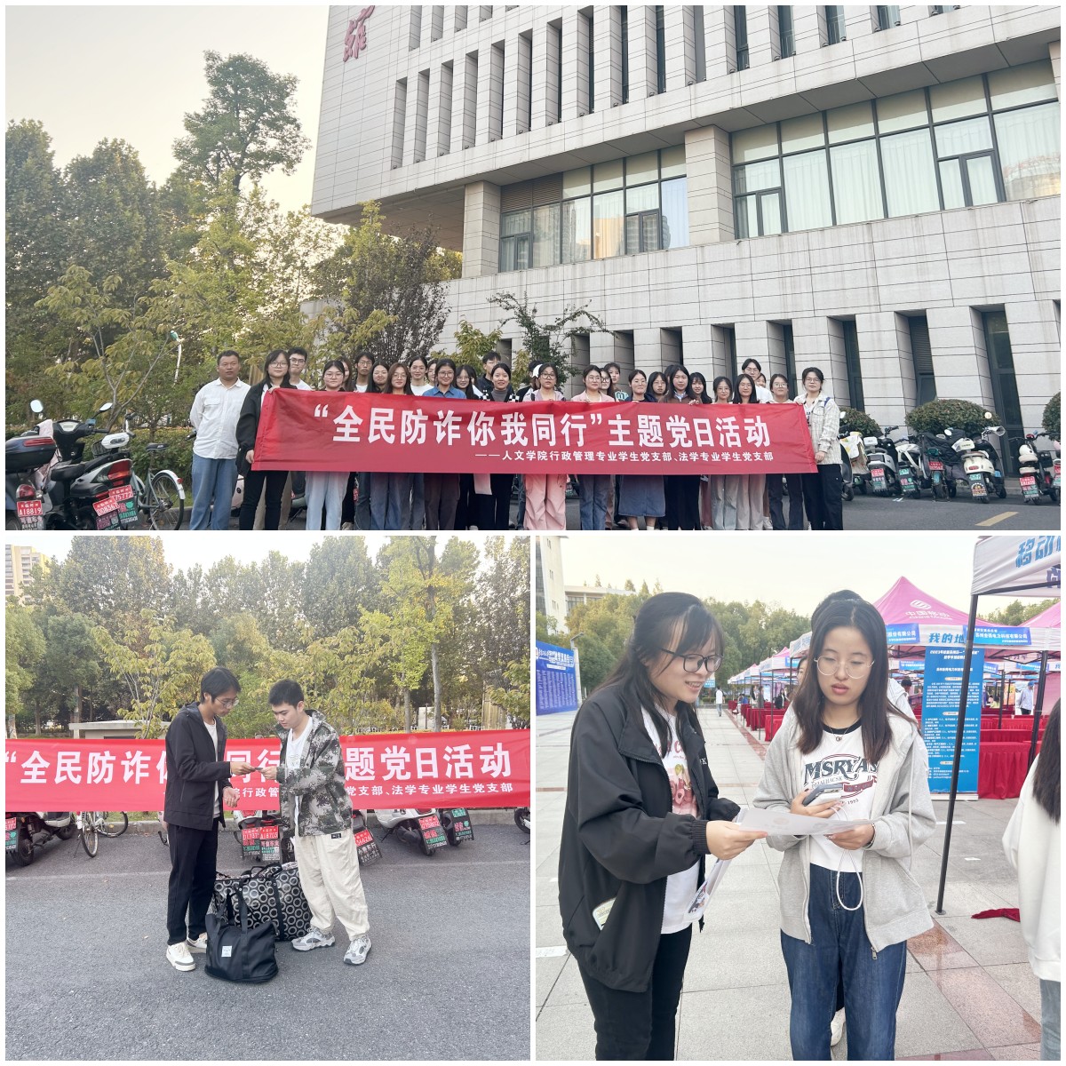 为助力“平安校园”“和谐校园”建设,充分发挥党员先锋模范带头作用,进一步增强大学生反电诈意识和能力,构筑防诈“防火墙”,10月18日下午,人文学院行政管理专业学生党支部联合法学专业学生党支部及“大学生法治宣传小分队”开展“校园防诈·你我同行”主题党日活动。