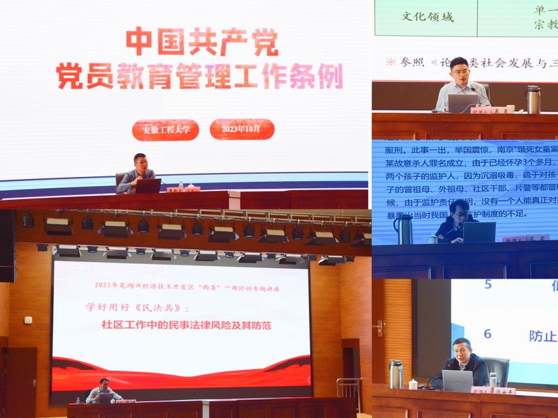 此次培训班历时3天,以“集中授课+实地观摩+研讨汇报”等多样形式开展,围绕社区工作为学员们“量身制定”教学板块,邀请了中共芜湖市委党校、芜湖市民政局以及RayBetApp官网下载 的专家老师为学员授课,重点学习中国共产党党员教育管理工作条例、中国共产党发展党员工作细则、党的二十大精神、社区工作中的民事法律风险及其防范、困境儿童保障和农村留守儿童关爱保护政策解读以及社会救助政策解读等内容,旨在进一步增强“四个意识”,从多个方面提升社区“两委”干部政治素养及业务履职能力。