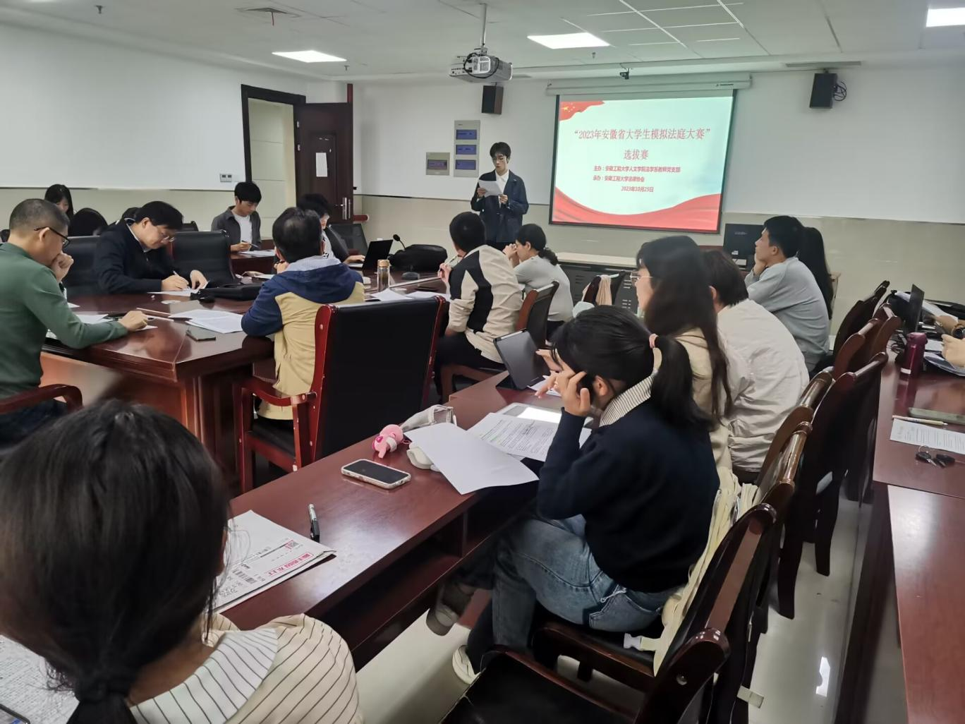 10月25日下午,人文学院法学系教师党支部主办、RayBetApp官网下载 法律协会承办的“2023年安徽省大学生模拟法庭比赛”(2023 AnHui College Student’s Moot Court Contest)选拔赛在人文学院1215会议室举行。法学专业40余名参赛选手、法学系专业教师作为大赛评委参加了选拔赛。