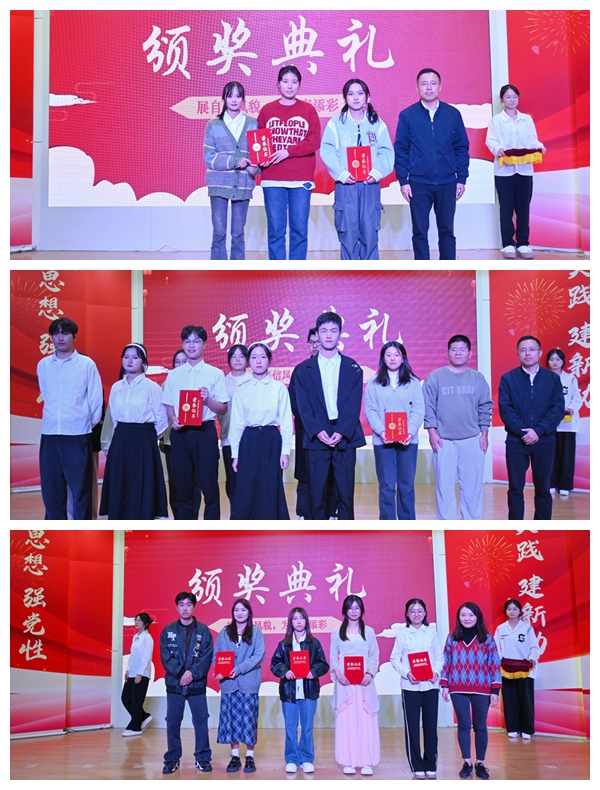 经过激烈角逐,电商法231张振群诵《青春扬帆正当时,争做时代追梦人》、法学233陈思怡话剧《坦途》获得一等奖,暖途青年志愿者服务社小品《小甜橙的一天》、法学232刘梓涵独舞young》获得二等奖,法学222方畅独唱《还记得那天》、法学231合唱《夜空中最亮的星》、法学231陈文暄双人中国舞《怎叹》、法学233陈思怡群唱《歌曲串烧—胡同+葡萄成熟时+想你时风起+凄美地》获得三等奖。最后,评委与获奖选手合影留念,本次活动圆满落幕。