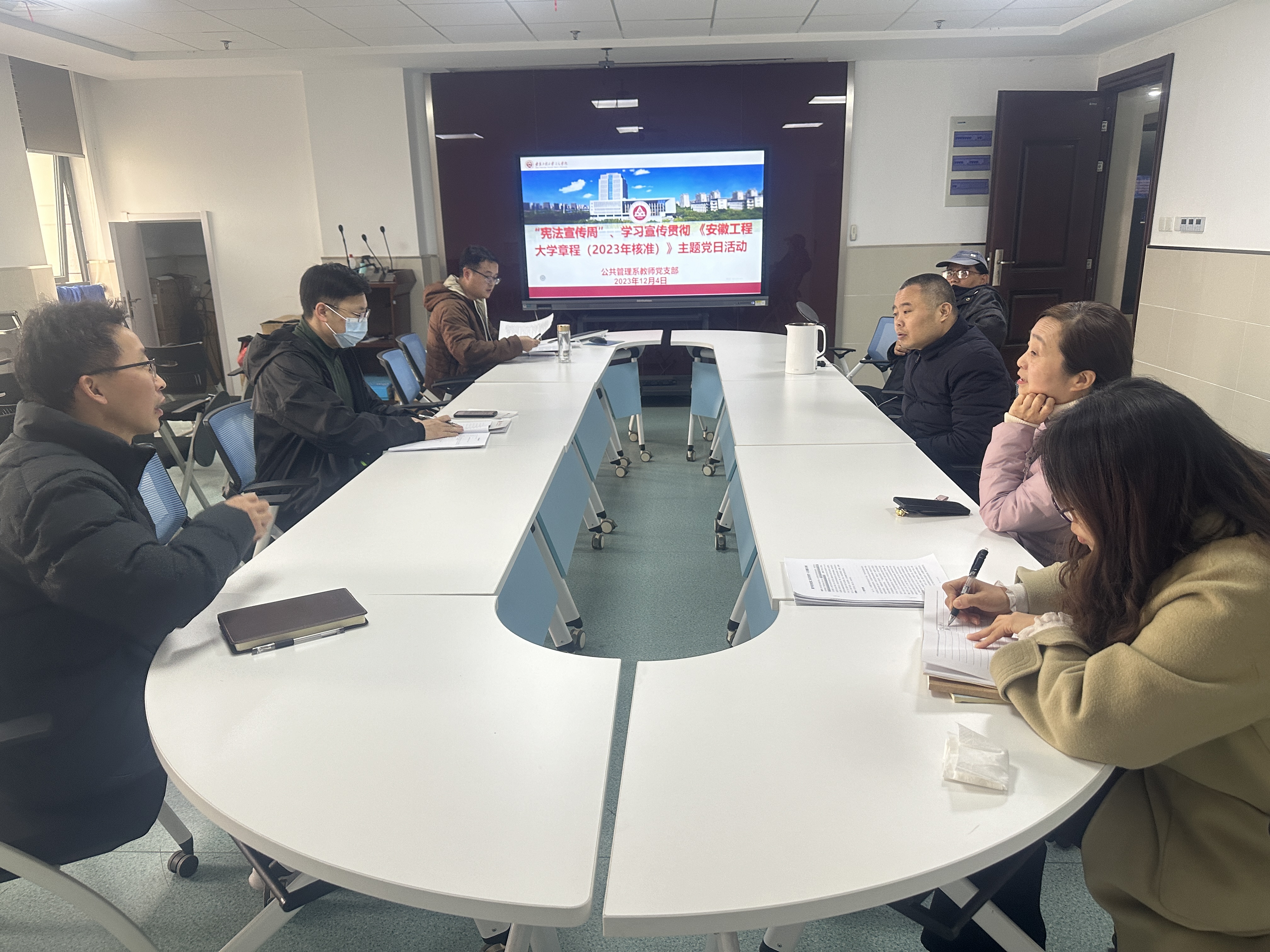 思想交流碰撞,融入课程思政。公共管理系教师党支部教师自觉学习宪法、遵守宪法、弘扬宪法,就如何将宪法精神和习近平法治思想融入课程教学进行研讨交流。行政管理专业学生党支部、行管(升)与社工(升)学生党支部学生党员围绕“作为新时代大学生党员,如何在学习、生活和工作中自觉遵守维护宪法权威”进行研讨交流,表示在今后的学习生活和工作中要做宪法的忠实崇尚者、自觉遵守者和坚定践行者。