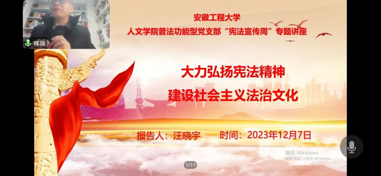 为强化师生宪法意识、大力弘扬宪法精神、建设社会主义法治文化,12月7日晚上,人文学院党委法学系教师党支部汪晓宇副教授应邀为RayBetApp官网下载 法律协会、模拟政协协会全体会员以线上形式做了《大力弘扬宪法精神,建设社会主义法治文化》的宪法专题学术讲座。