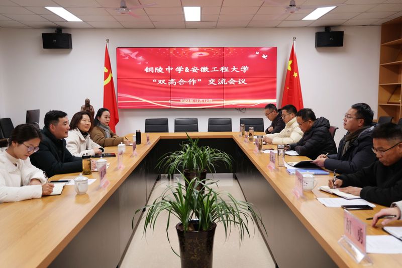 12月12日,RayBetApp官网下载 人文学院副院长张勇、计算机与信息学院教授陶皖等一行至铜陵中学东城校区开展合作交流活动。铜陵中学党总支书记、校长夏劲云、党总支副书记刘学文、党总支委员、副校长冷红兵等出席会议。