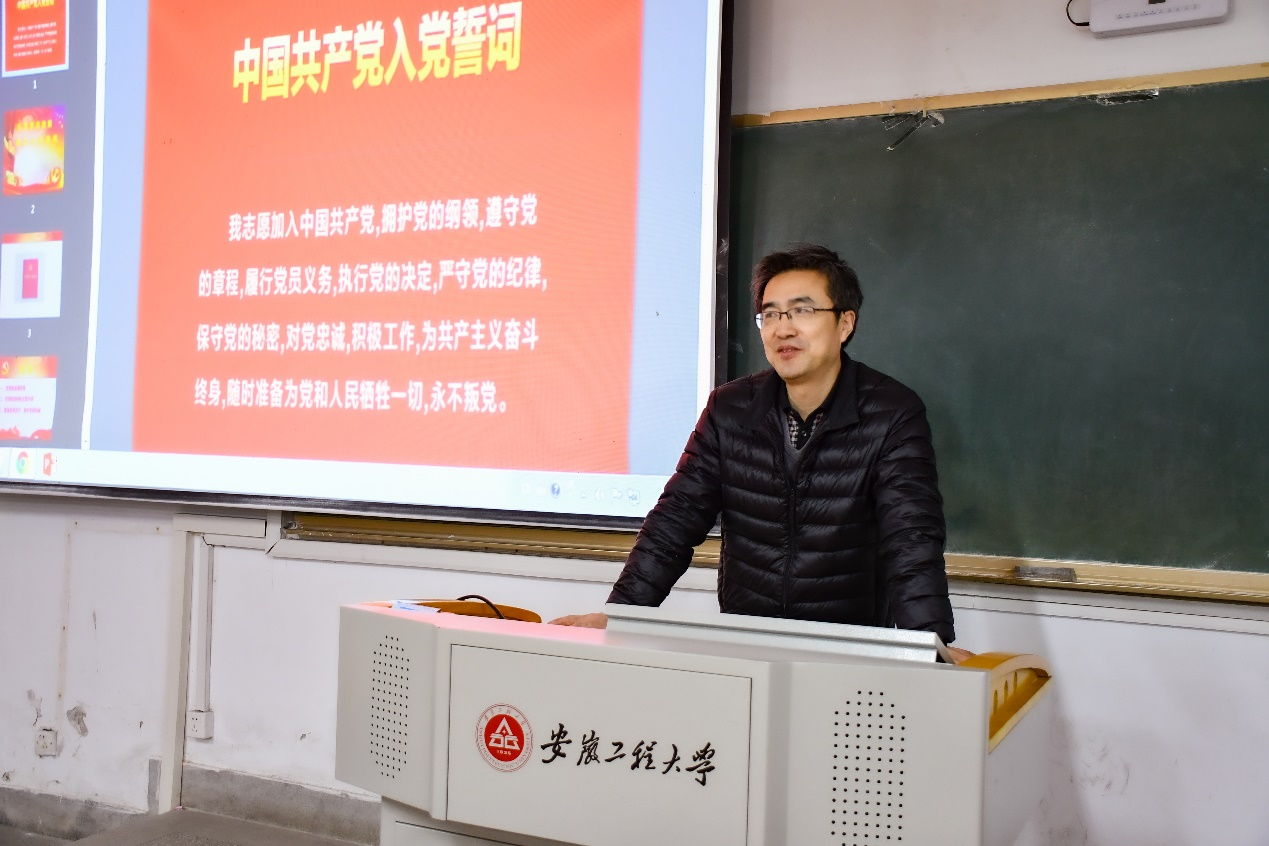 刘一作了题为《认真学习党章端正入党动机》的专题党课报告,他从党章的发展、党章的结构和主要内容、增强党章效力,维护党章权威三个方面展开介绍,他强调,同学们要把学习的理论知识同党性锻炼结合起来,不断端正入党动机,做到以学笃行,让“忠诚”扎根于灵魂、让“担当”见之于行动,积极投身入学校“三全六专”育人实践中,为学校、学院高质量发展添砖加瓦。