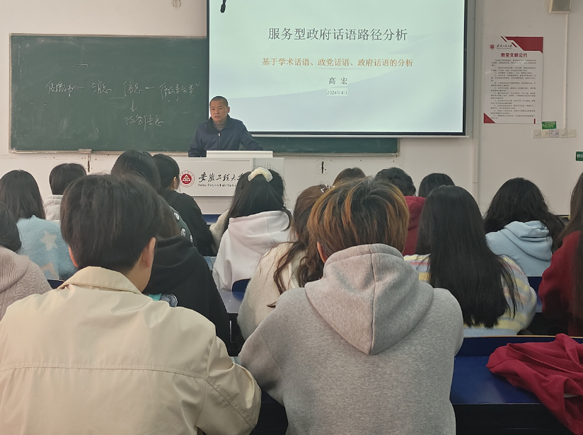 4月9日上午,人文学院教师高宏为学院师生作了一场题为《服务型政府话语路径分析》的学术报告。学院师生四十余人参加了报告会。