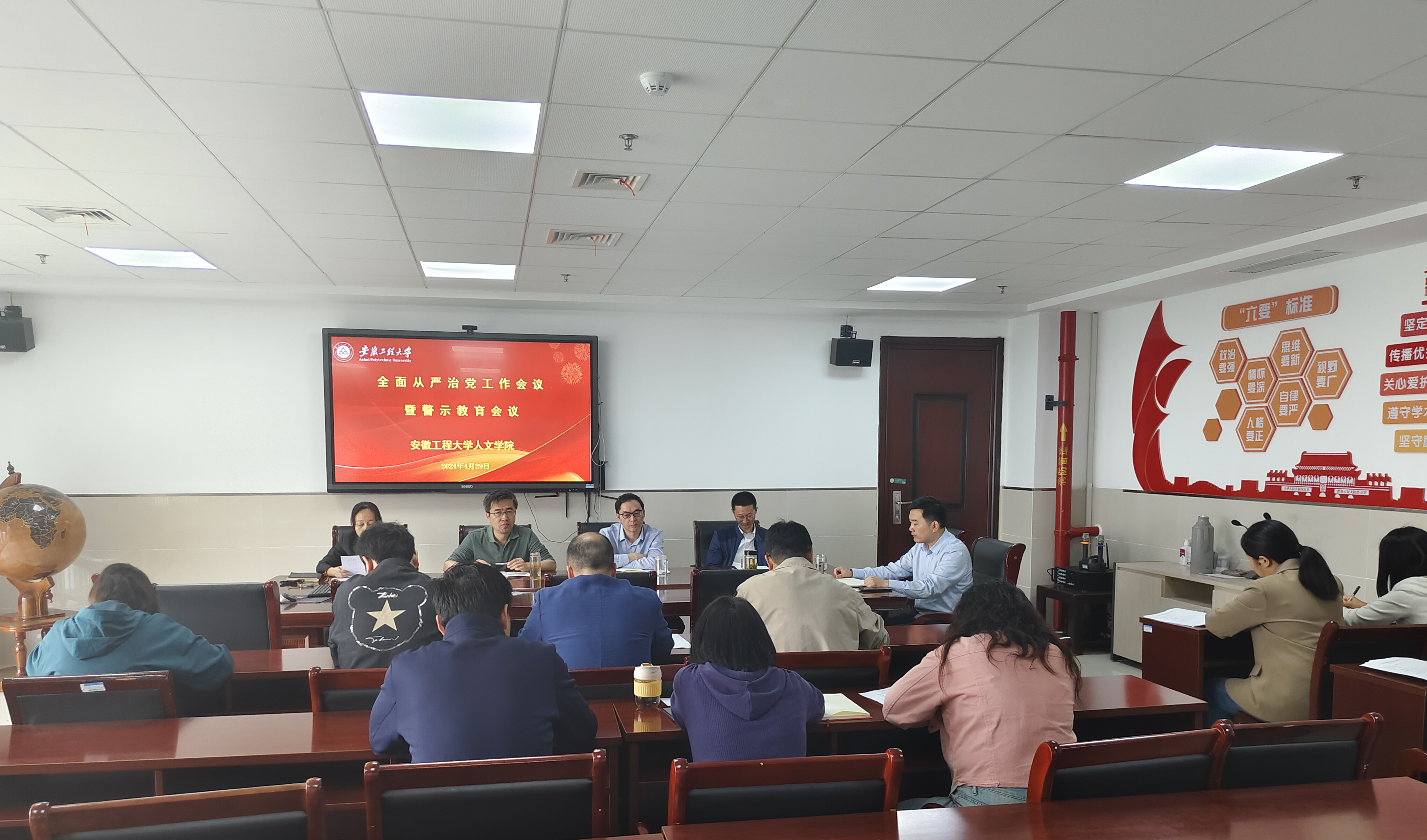 4月29日,学院在图书馆1307会议室布置安排2024年全面从严治党及警示教育工作。学院党委委员、领导班子全体成员、学院科级干部、支部书记、辅导员参加会议,会议由院党委书记刘一主持。