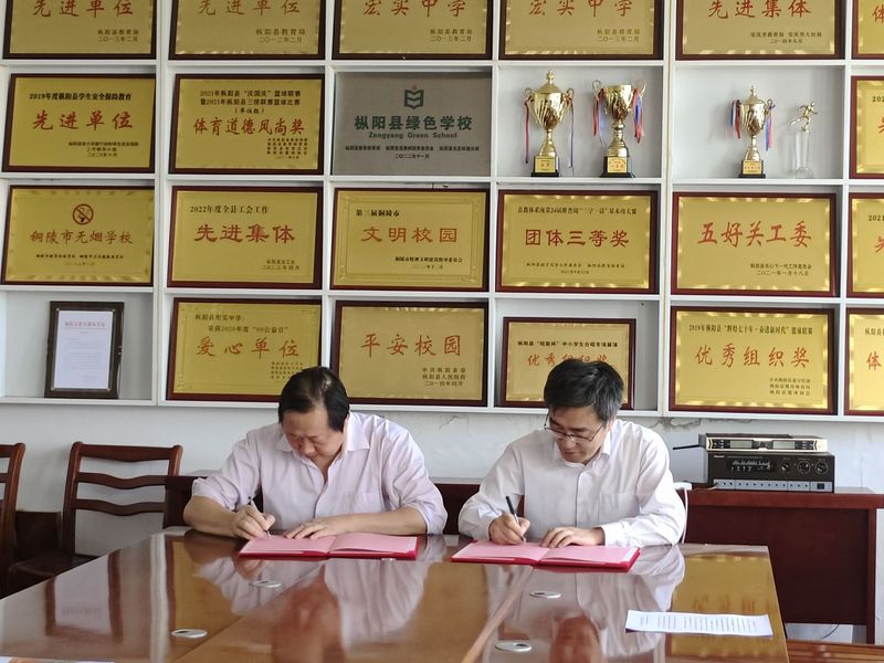 5月14日上午,人文学院党委书记刘一、副院长张勇、法学系主任张雷等一行赴铜陵市枞阳县宏实中学举行“优质生源基地”签约授牌仪式,开展招生宣传活动。宏实中学副校长祖昭云,副校长鲍时红,安全办主任何池方,教务处副主任钱苏出席签约仪式。