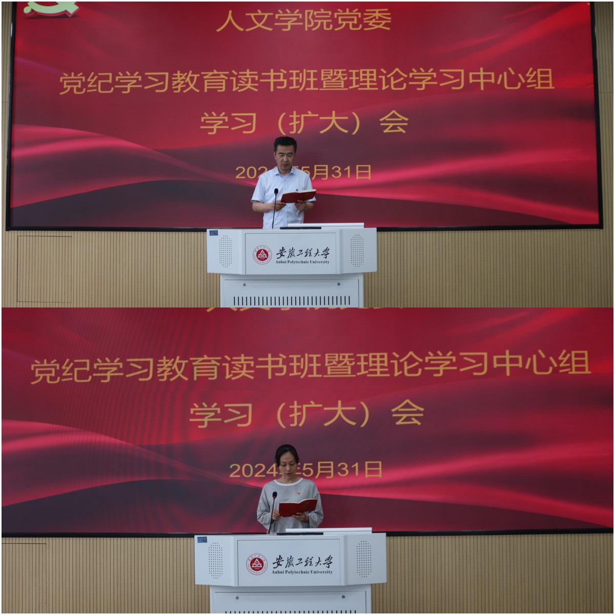 5月31日,人文学院在5J217举办党纪学习教育读书班第三次专题学习研讨会,学院全体师生党员参加会议,会议由学院党委书记刘一主持。