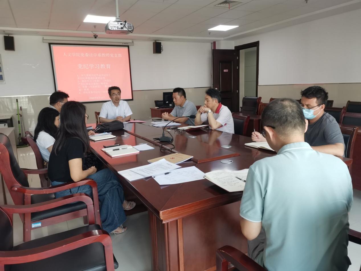 6月12日下午,人文学院法学系教师党支部在T1215会议室召开党员大会。人文学院党委书记刘一出席会议,法学系全体教师党员参加会议,会议由支部委员邵志超主持。