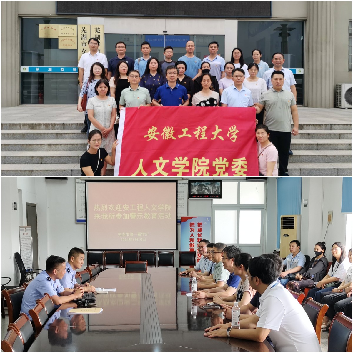 为扎实推进党纪学习教育走深走实,提高党员干部廉洁自律意识,7月10日,人文学院党委组织全体党员前往芜湖市第一看守所、女子看守所开展警示教育活动。