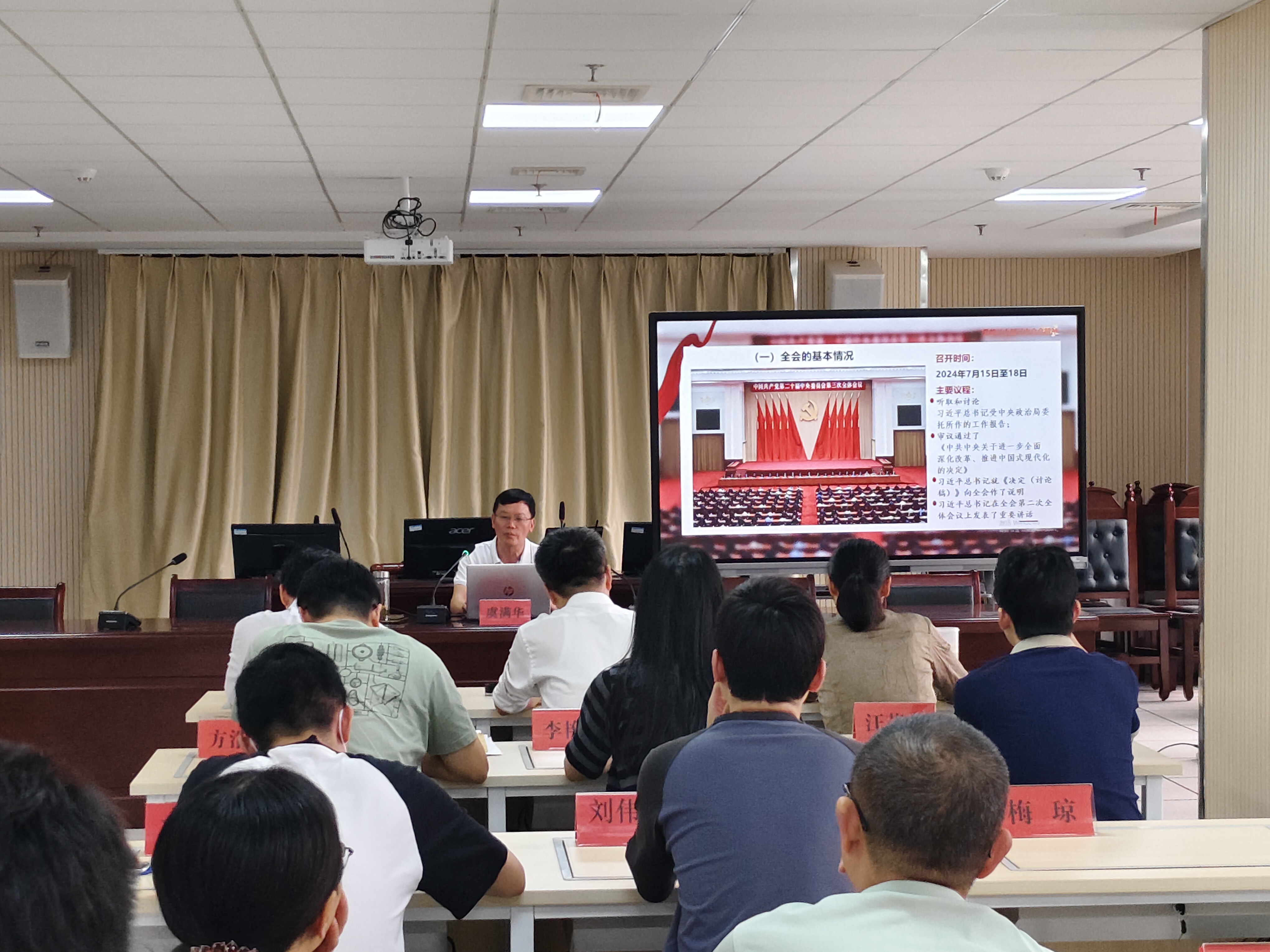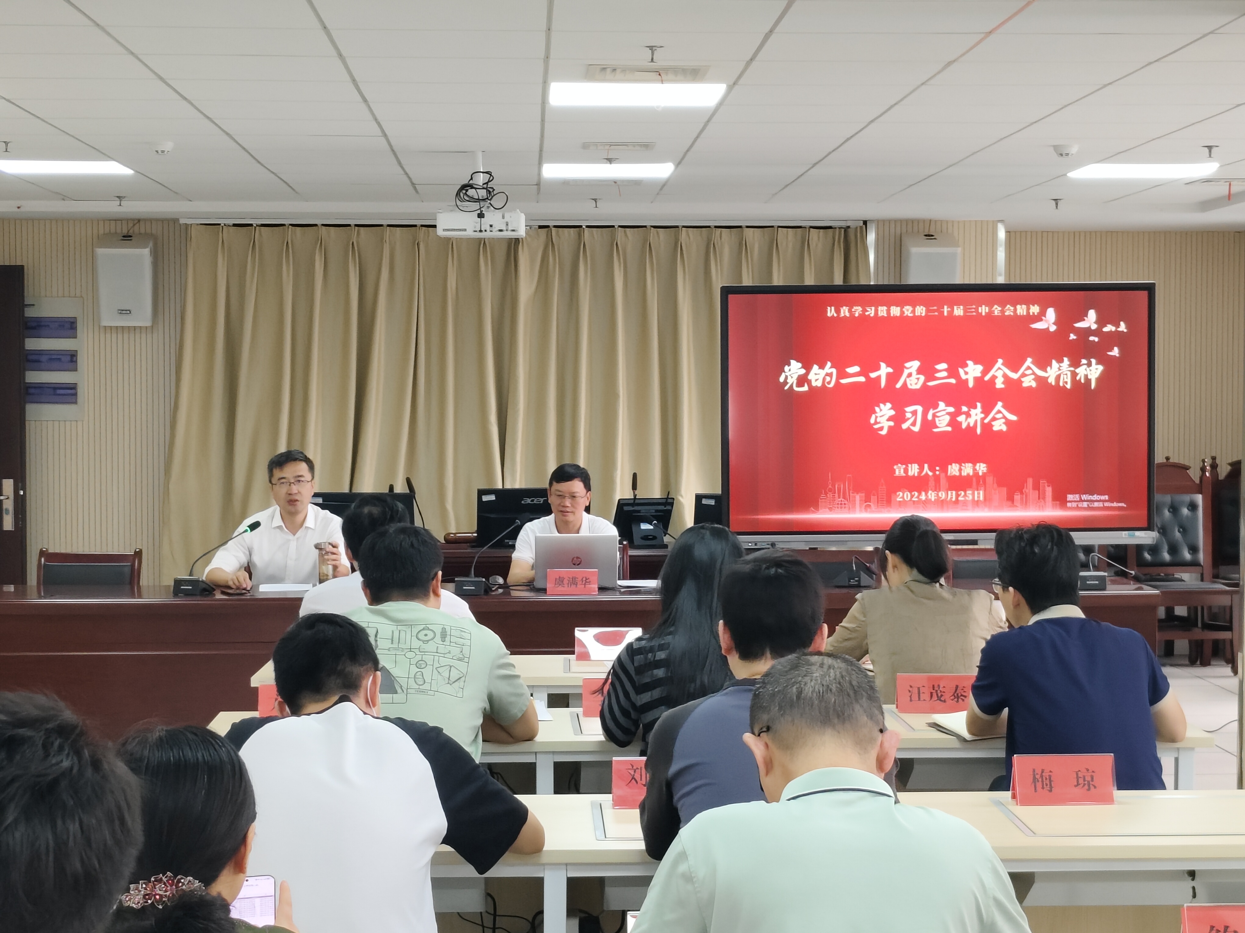 为深入学习贯彻党的二十届三中全会精神,引导全院教职工更好地用全会精神武装头脑、指导实践、推动工作,9月25日,人文学院组织召开学习贯彻党的二十届三中全会精神宣讲会。校宣讲团成员、马克思主义学院教授虞满华应邀作宣讲。报告会由学院党委书记刘一主持。