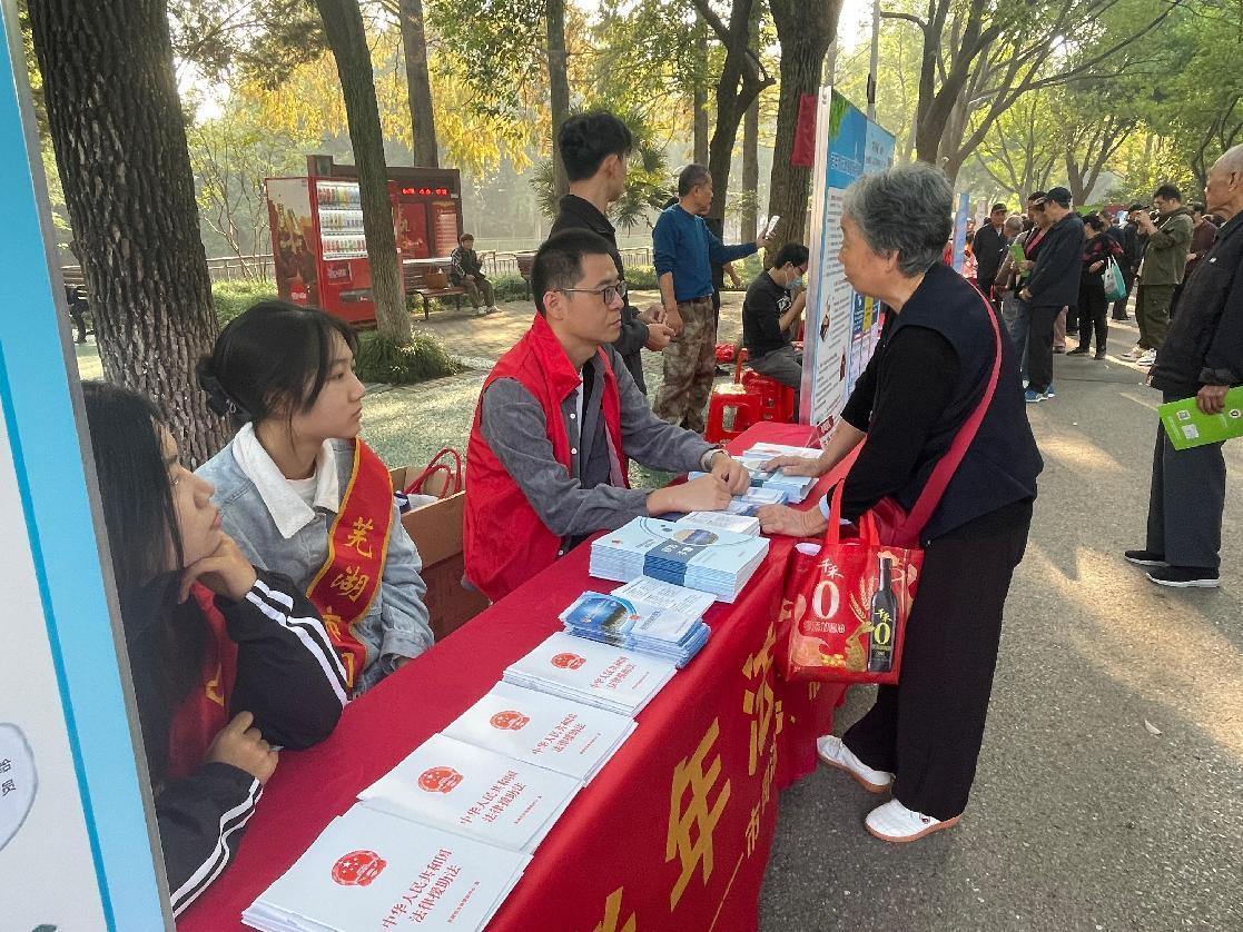 为保护老年人的合法权益,让老年人能够更好地运用法律武器维护自身权益,10月11日上午,芜湖市法律援助中心在赭山公园开展老年人法律援助宣传活动。芜湖市法律援助中心RayBetApp官网下载 法律援助工作站志愿者、人文学院法学244刘诗语、法学244王艺涵参加此次法援活动。