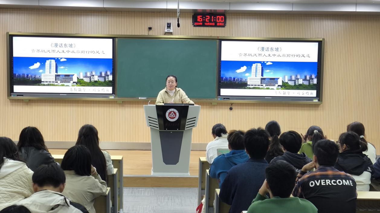 10月30日下午,校第五期“经典悦读”班在5J116举行第一次悦读分享活动。此次分享会由人文素质教育教研室教师党支部的曹学琴老师主讲,悦读班全体成员参加,师生相聚一堂,共话“国民偶像”苏东坡。