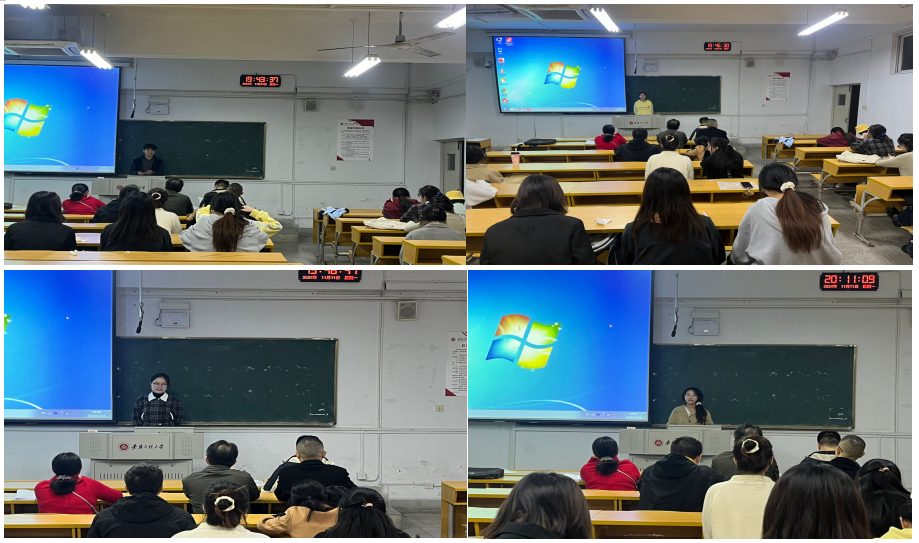 11月11日晚上,法学系在4J111召开2022级专业实习总结会,法学系全体实习指导教师和各实习单位学生负责人参加总结会。