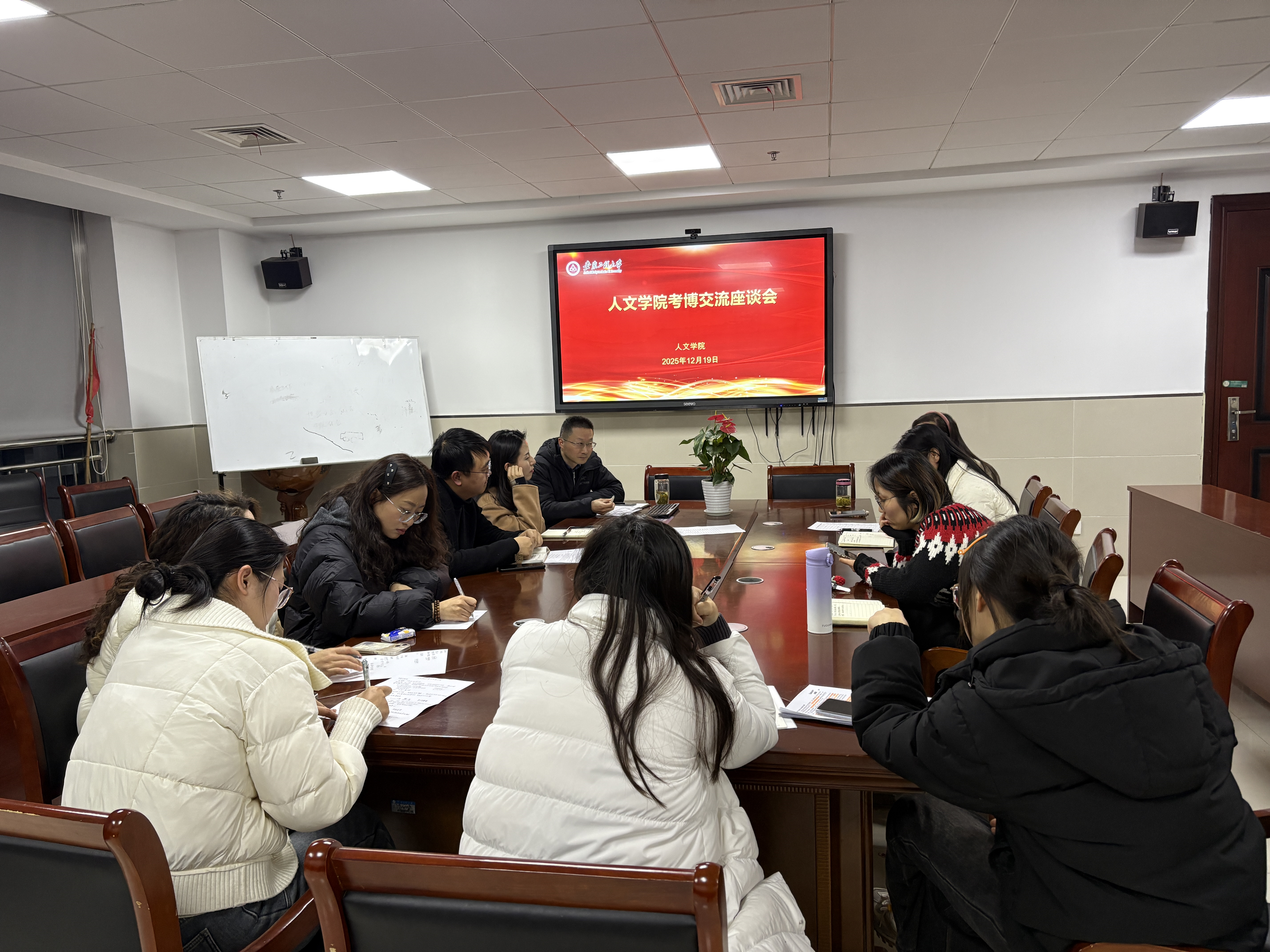 为帮助有考博意向的学生明确备考方向、解决升学困惑,12月19日,人文学院组织召开考博交流座谈会。学院硕士学位点相关导师、辅导员及有考博意向的研究生代表参会,学院副院长邹俊主持座谈会。