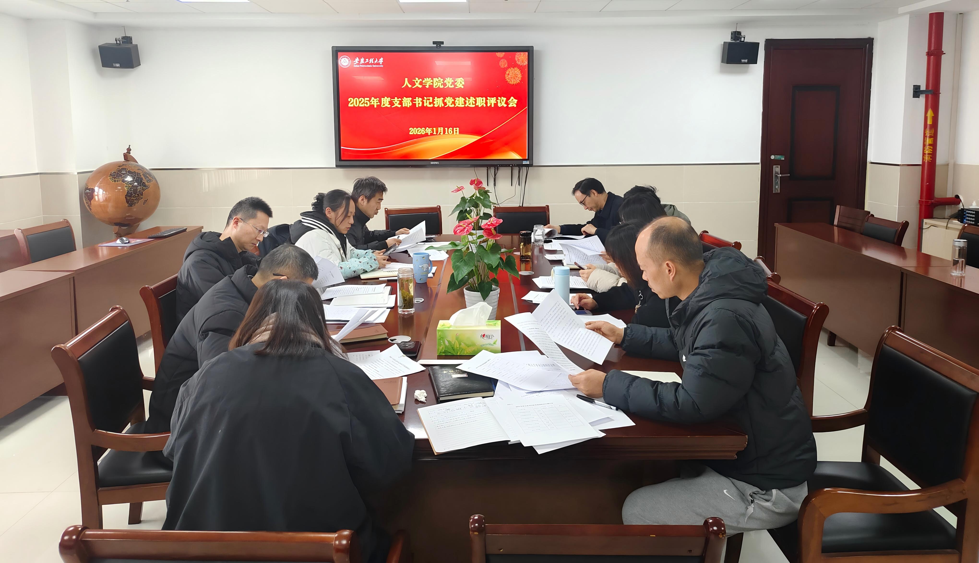 1月16日上午,人文学院召开2025年度党支部书记抓基层党建工作述职暨支部工作考核评议会。学院党政领导班子成员、党委委员、各党支部书记及教师党员代表参加会议。会议由学院党委书记刘一主持。
