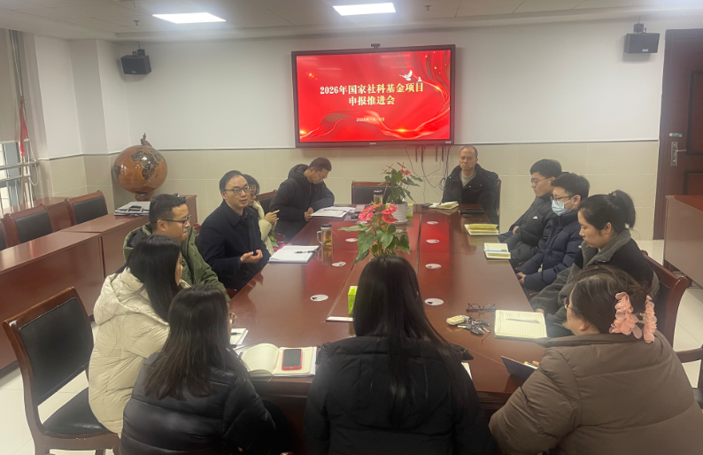2026年1月19日下午,人文学院组织召开2026年度国家社科基金项目申报推进会。院长刘军、学院拟申报2026年度国家社科基金项目教师参加会议,会议由副院长邹俊主持。