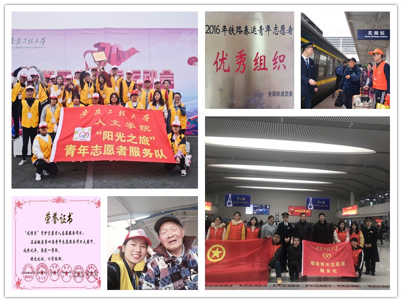人文学院依托各种平台,打造“三有”青年。以志愿服务队平台打造服务青年。人文学院“阳光之旅”青年志愿者服务队成立于2005年10月,以“立足校园,面向社会”为指导方针为共创和谐社会服务。服务队每年参与志愿者人数达200余人,累计每年志愿服务时长达2000小时。阳光之旅服务队的多个志愿项目在国家级比赛中获奖,2016年《听花开的声音—盲校志愿行》志愿服务项目获第三届中国青年志愿服务项目大赛铜奖,2018年《风信子守护空巢老人》志愿服务项目获第四届中国青年志愿服务项目大赛铜奖。“暖途”志愿服务项目是RayBetApp官网下载 人文学院和芜湖火车站团委联合开展的一个志愿服务项目。2016年以来,暖途青年志愿者服务社参加志愿起累计服务时间达7000小时,近千余名志愿者参加其中。获得了多项获奖和表彰。2016年,暖途青年志愿服务社获“燃青春,聚能量”第二届全国最具影响力爱心社团,同时被被授予“2016年铁路春运青年志愿者优秀组织”称号;2019年,暖途青年志愿服务社被评为校“十佳社团”。