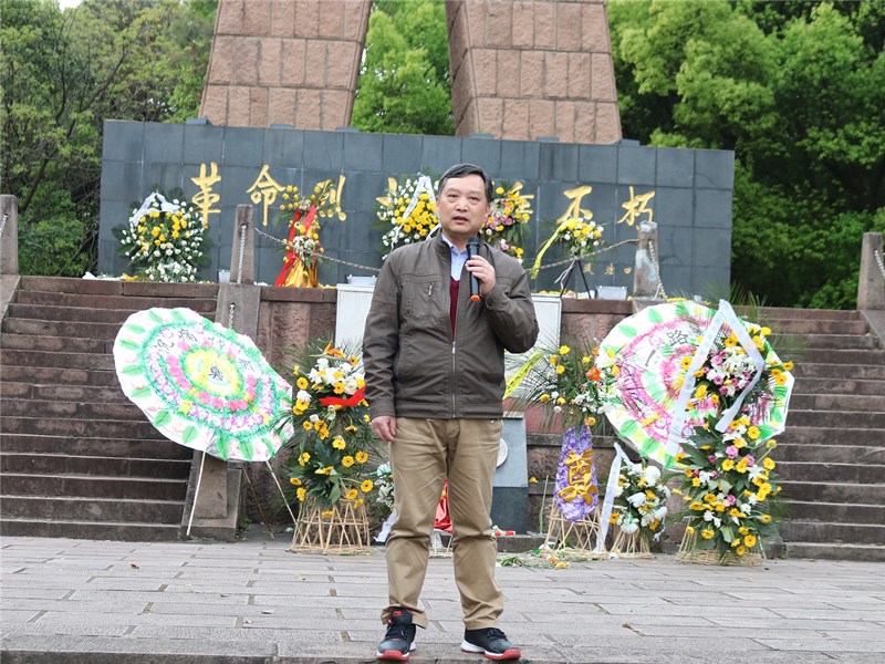 下午4点人文学院300多名团员青年于神山公园南门集合前往烈士陵园。4点半祭扫活动开始,师生共唱国歌拉开帷幕。全体人员面向烈士纪念碑肃立,向烈士纪念碑敬献花圈,并默哀三分钟,向长眠于此的革命烈士表达团员青年最崇高的敬意。随后由宋研、童夏生作为团员代表朗诵《在烈士纪念碑前》,“雄碑耸立,是你高大的身影;细水长流,是你不朽的心灵”吟咏先驱们的圣洁光辉与伟岸;“让鲜艳的五星红旗为我们作证,你们未能走完的征程将由我们进行”诵出新青年的崇高志向与信仰,慷慨激昂,令人肃然起敬。随后由行管专业学生党支部党员江周带领全体团员重温入团誓词,铿锵有力的誓言再次回荡在每一团员青年心中。