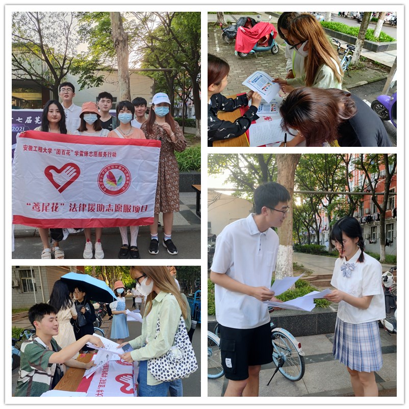 正值建党百年之际,为进一步加强新时代青年大学生思想政治教育,传承志愿服务精神,响应五四青年节和国家网络安全宣传活动的号召。5月9日和16日,由9名2019级法学专业学生组成的“鸢尾花”法律援助志愿服务团队志愿者们在学校第二食堂附近分别开展“‘典’亮青春,与法同行”和“文明上网,法治校园”主题法律宣传活动。