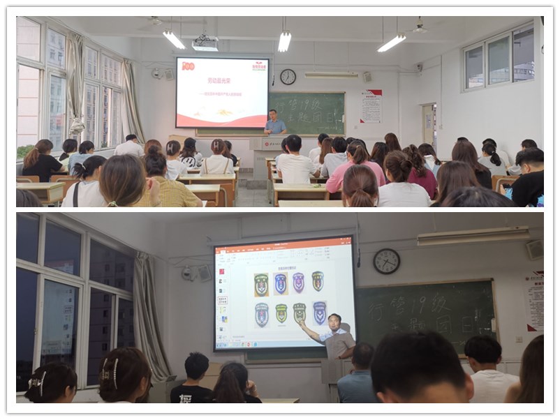 蔡金平以《劳动最光荣》为主题给同学们讲授了一堂别开生面的团课,他从“建党百年中国共产党人的劳动观”这个角度切入,回顾中国共产党领导中国人民百年的奋斗征程,重温历史赋予中国共产党人的奋斗目标和光荣使命,概述党在各个时期的奋斗目标和任务。希望同学们能够树立正确的劳动观,做合格的社会主义建设者和接班人。退役大学生行管(升)201班程勋,结合自己经历讲红色故事,述军旅生涯,分享他在军营的日常生活,向学生们宣讲的人民军队的光荣历史,提升团员青年爱党爱国爱军的意识,是一堂生动的爱国主义教育课。