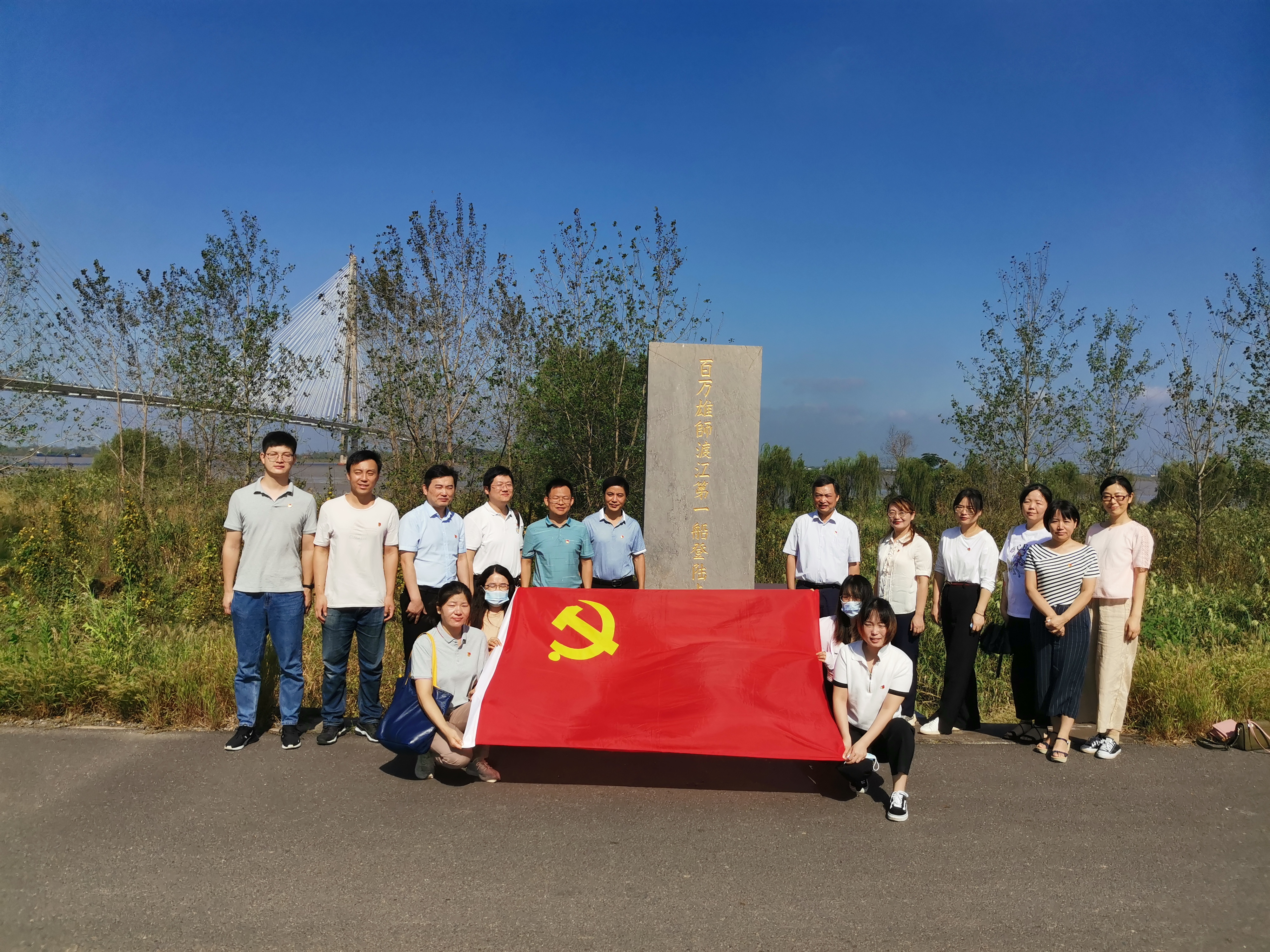 全体老师共同瞻仰了位于弋江区保定街道团洲村夏家湖“百万雄师渡江第一船登陆点”,认真学习了一九四九年四月二十日,第二十七军七十九师二三五团一营三连二排五班率先在夏家湖登陆的伟大历史时刻,石碑上鲜红的大字仿佛在无声地述说当年的铁血横渡,在场的老师在纪念碑前也纷纷追忆那些为新中国诞生而奋斗和献身的英雄先烈。纪念碑参观结束后,全体人员来到团洲村村部的渡江战役展厅继续学习,一幅幅珍贵、生动的历史图片、实物、影像再现了当年渡江战役的历史全貌,在解说员的带领下深刻感受那段壮烈非凡的历史。学习结束,邓英扣带领全体教师面向党旗举起右手重温入党誓词,现场共同诵读伟大建党精神。邓英扣要求全体人员要弘扬光荣传统、赓续红色血脉,为实现第二个百年目标继续奋斗。