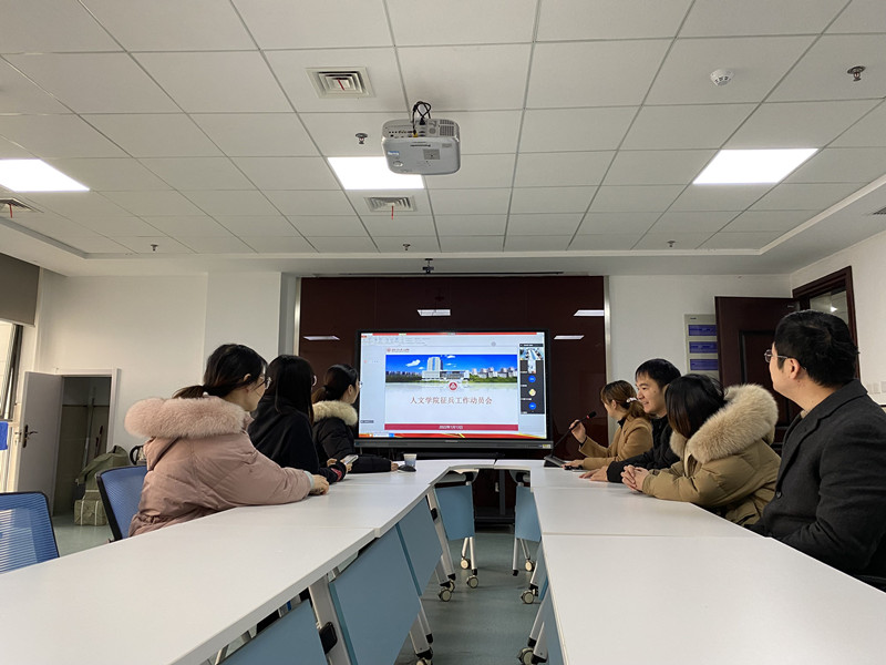 为强化国家安全建设,落实上级关于征兵有关文件精神,增强学生参军报国意识,落实立德树人根本任务,引导学生实现人生价值,1月13日,人文学院在1202会议室召开2022年度征兵工作动员会。学院邀请保卫处征兵工作站赵成靖老师作有关政策宣讲,动员会由学院党委副书记金艾裙主持,学院全体专兼职辅导员、2022届毕业生参加。