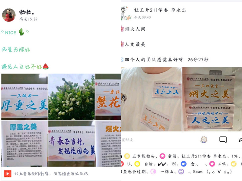 在徒步做任务过程中,同学们按照规定的路线漫步在校园,细致观察平时可能忽视的精彩,探索校园背后的故事,同时用手机把这份美好拍摄记录下来。社工(升)211李永志说到:“疫情虽然限制我们外出的步伐,但本次活动却为我们发现身边之美打开了另一扇窗,在比赛中,大家挥洒汗水、恣意青春,在团队合作中,不断加深彼此之间的情谊,此外,我们也感受到了工作人员的无限热情和耐心。”伴随着师生们的欢声笑语,活动圆满结束。